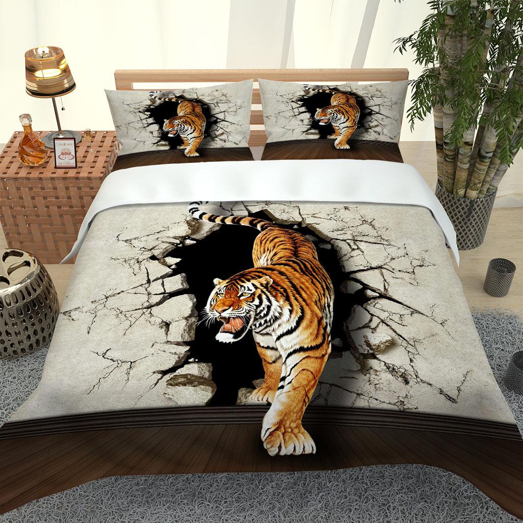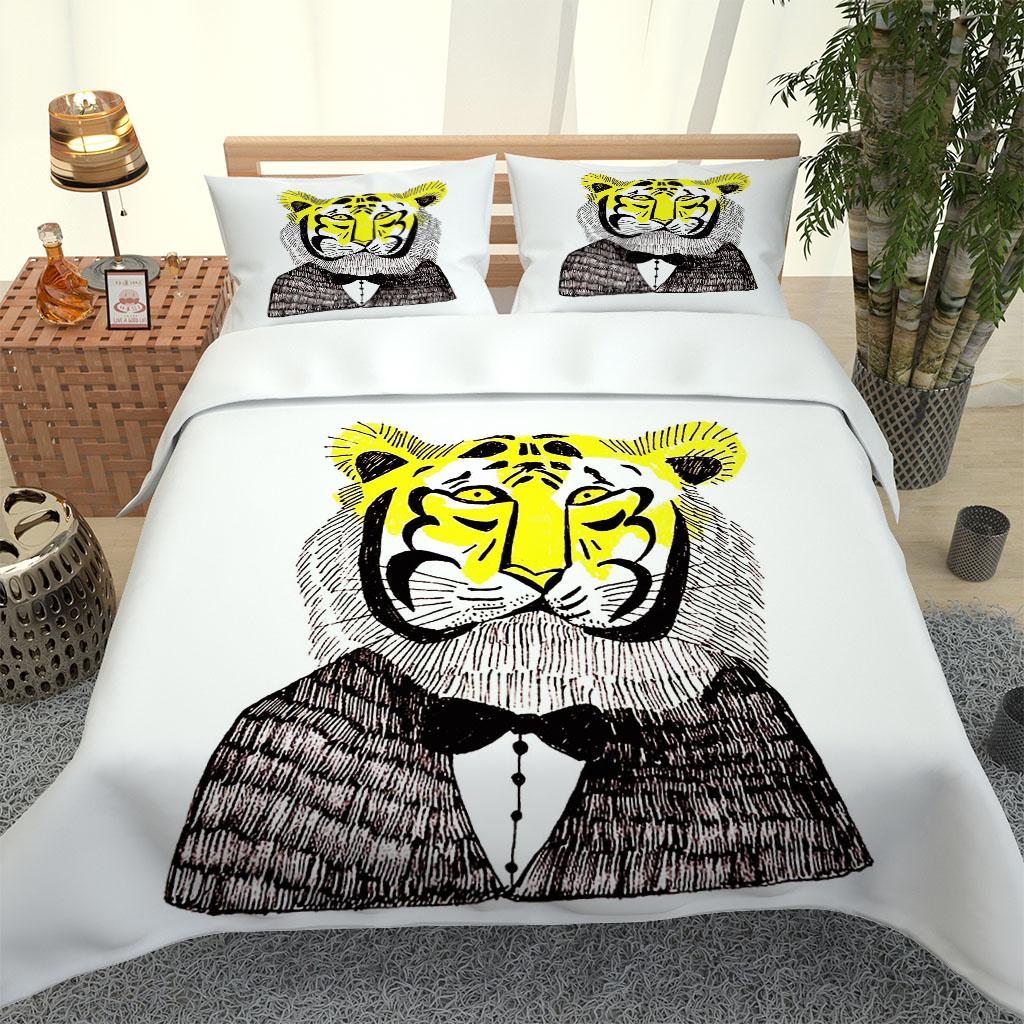 Пододеяльник Постельное белье Комплект постельного белья для двухспальной кровати Животное Тигр 3D Текстильное одеяло Чехол Наволочки Спальня Роскошный комплект постельного белья
