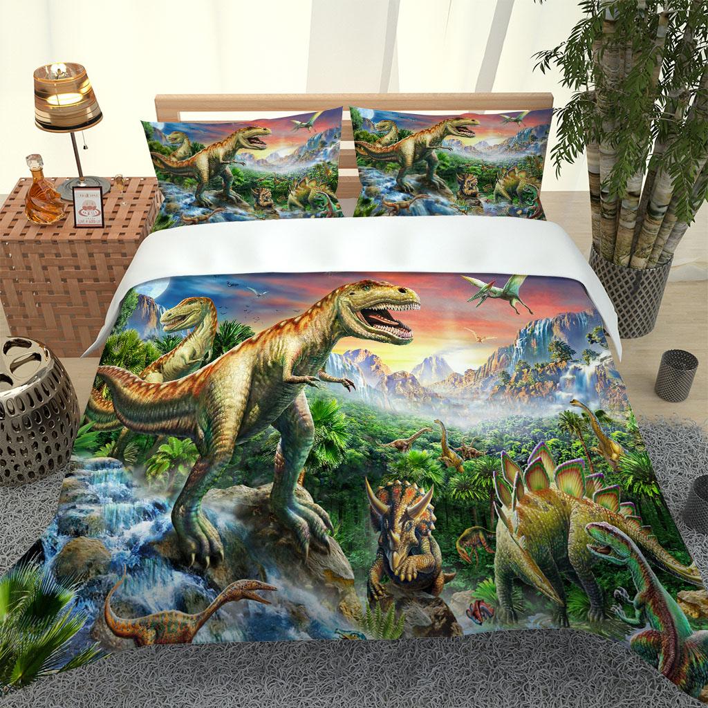 Полный комплект двуспальной кровати с изображением животных динозавров, 3D пододеяльник, King Queen, забавный комплект постельного белья для детей и девочек, полиэстеровый чехол, 2 наволочки — купить товар онлайн с бесплатной доставкой по всему миру!