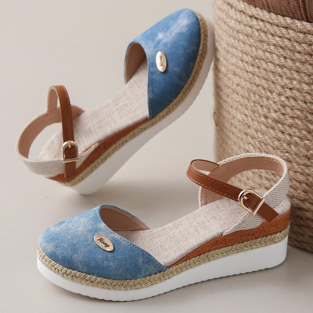 Сандалии одинакового цвета больших размеров на танкетке Легкая женская обувь Сандалии на платформе