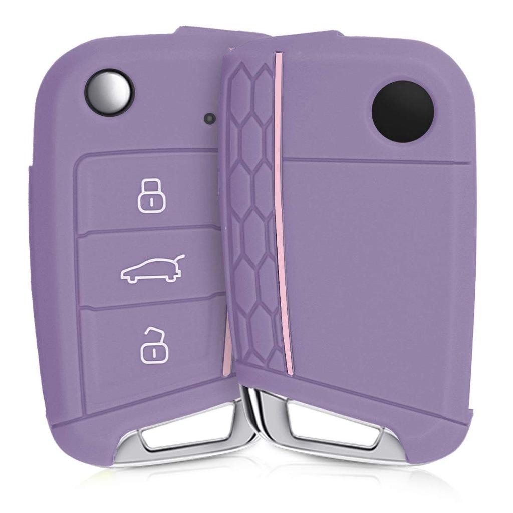 kwmobile Чехол для ключа совместим с: Чехол для автомобильного ключа VW Golf 7 MK7 с тремя кнопками - защитный чехол для автомобильного ключа, силиконовый, пастельно-фиолетовый/светло-розовый