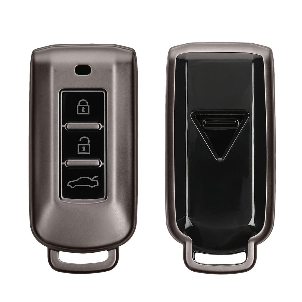 kwmobile Чехол для ключа Mitsubishi с 3 кнопками, совместимый с ключом от автомобиля - чехол для ключа с глянцевой отделкой TPU - противоударная защита ключа от автомобиля, черный матовый/черный