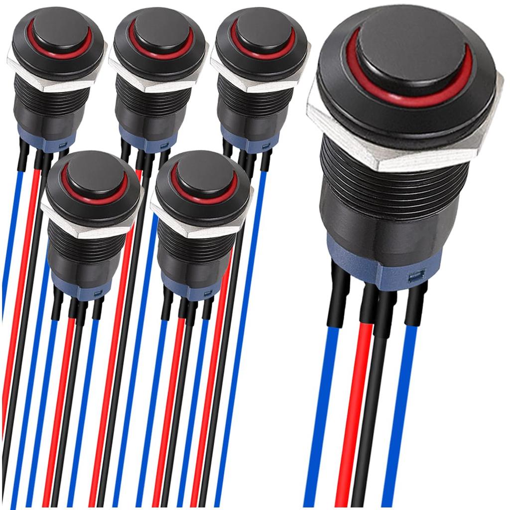 MKBKLLJY 6 шт. 12 мм светодиодный кнопочный переключатель с фиксацией, черный корпус, предварительно смонтированный, IP65 с красным светодиодом для автомобиля, морской лодки
