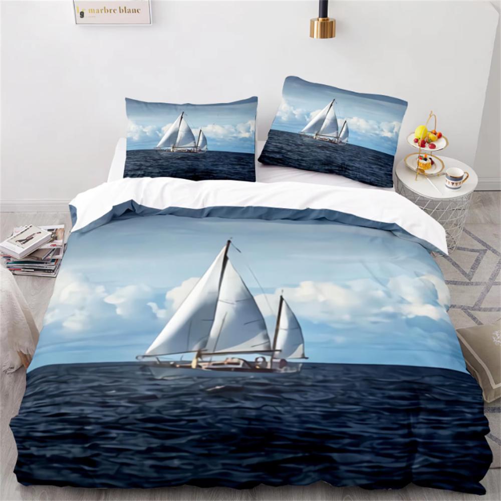 Комплект пододеяльников Wave, комплект постельного белья Sea Ocean Nautical, пододеяльник с парусником, размер Queen/King/Full/Twin, полиэстеровый пододеяльник