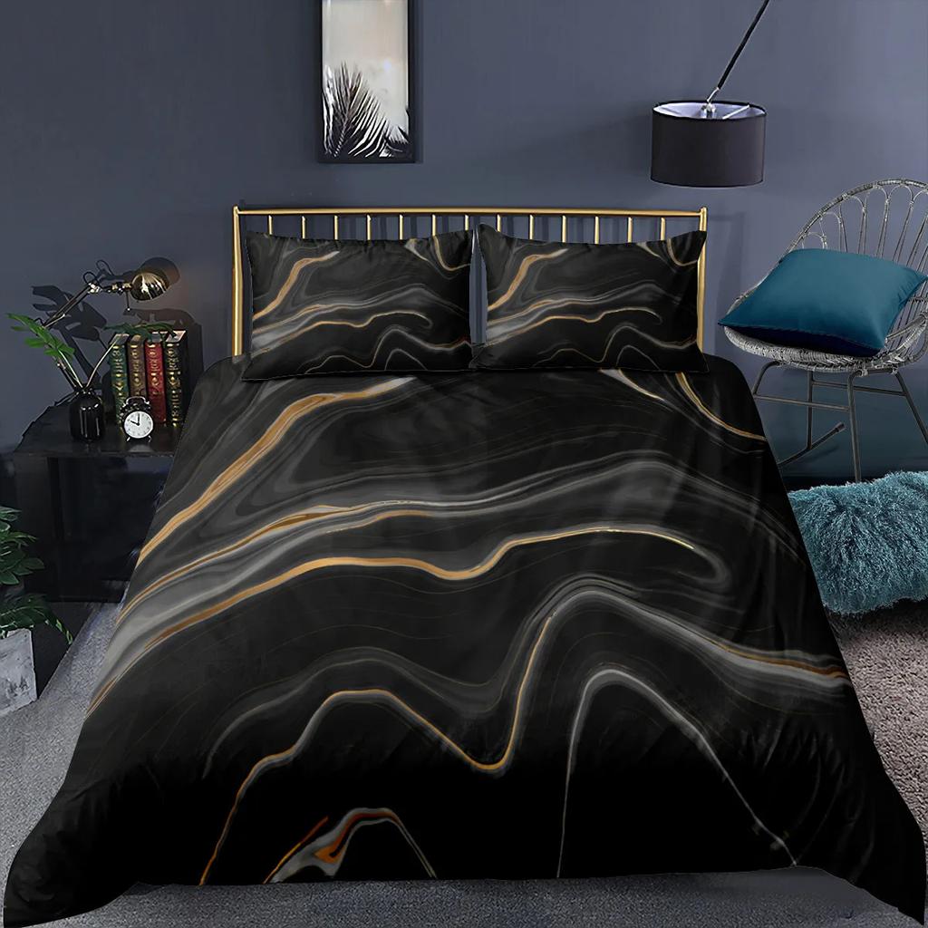 Роскошный черный мраморный пододеяльник, комплект постельного белья с 3D-цифровой печатью, модный мраморный чехол, дизайн постельного белья, комплект постельного белья