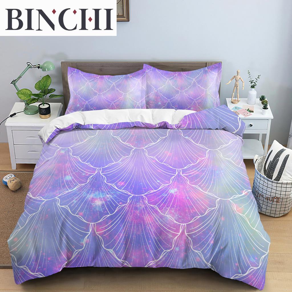 Цветной пододеяльник «Русалка», Комплект постельного белья с красочными рыбными чешуйками, Персонализированный комплект одеяла с наволочкой, Декор для спальни женщин и девочек
