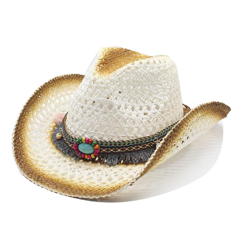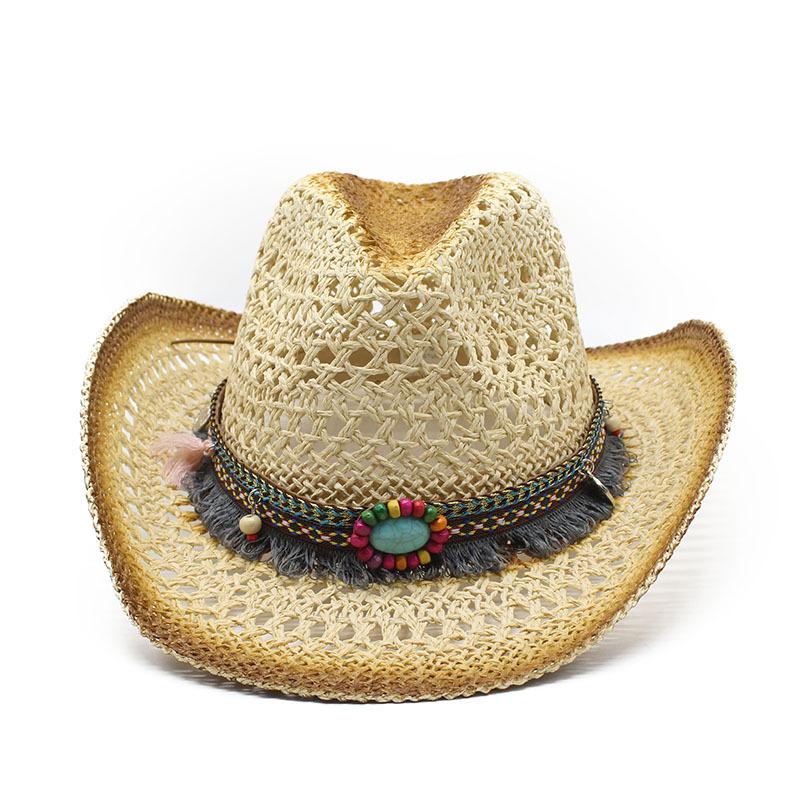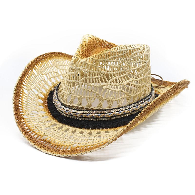 Рекомендуемая соломенная ковбойская шляпа в этническом стиле, пляжная шляпа с козырьком для летнего отпуска, панама с гофрированными большими карнизами