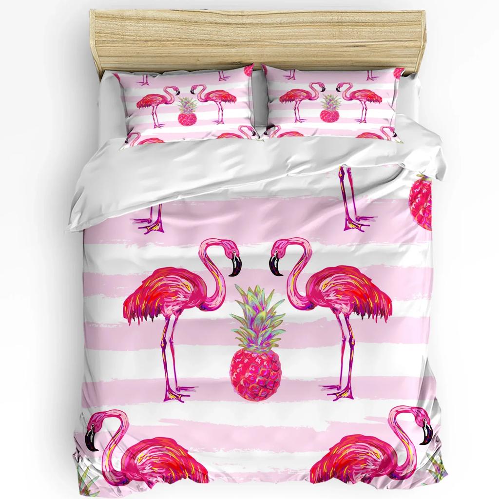 Пододеяльник в скандинавском стиле с розовым фламинго, комплект постельного белья, домашний текстиль, пододеяльник, наволочки, двуспальный комплект постельного белья без простыни
