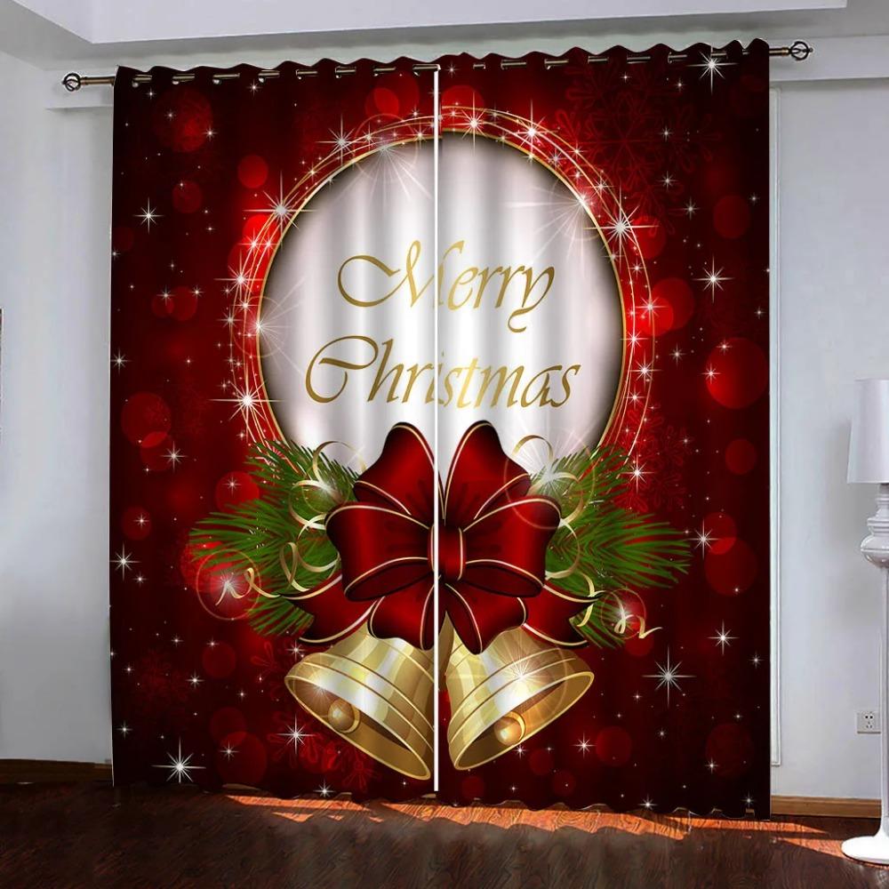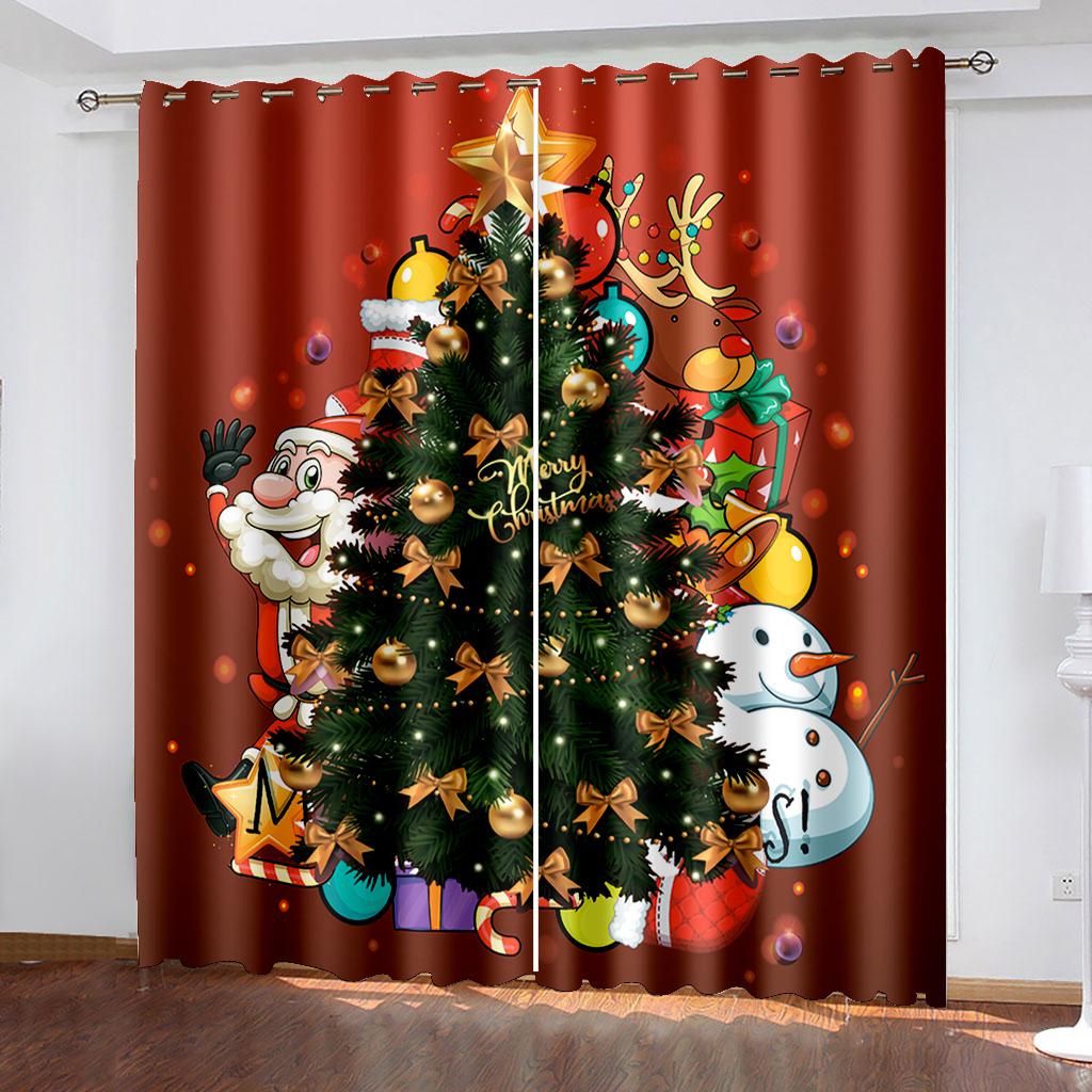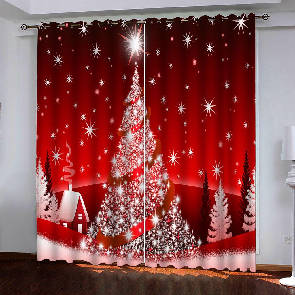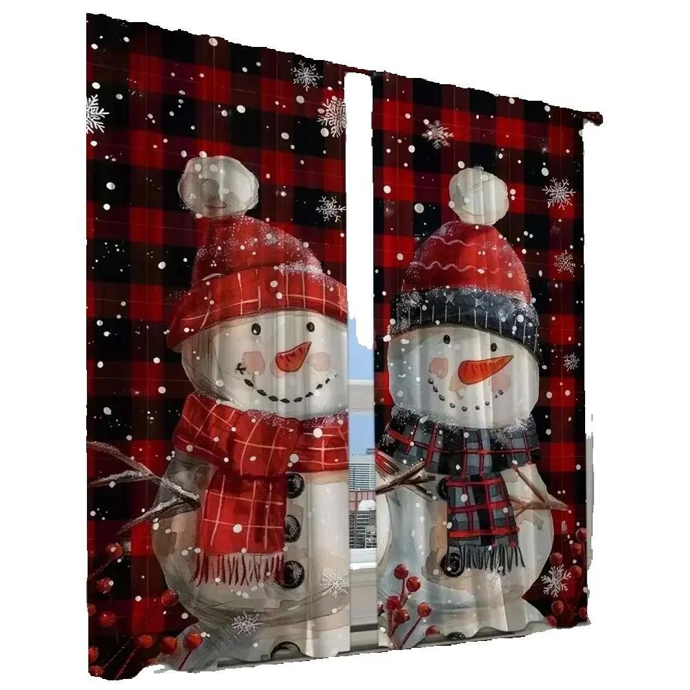 2 красные полузатемняющие шторы с принтом Санты, зимние снежинки, праздничный полиэстер, подходящие для гостиной, кухни, спальни