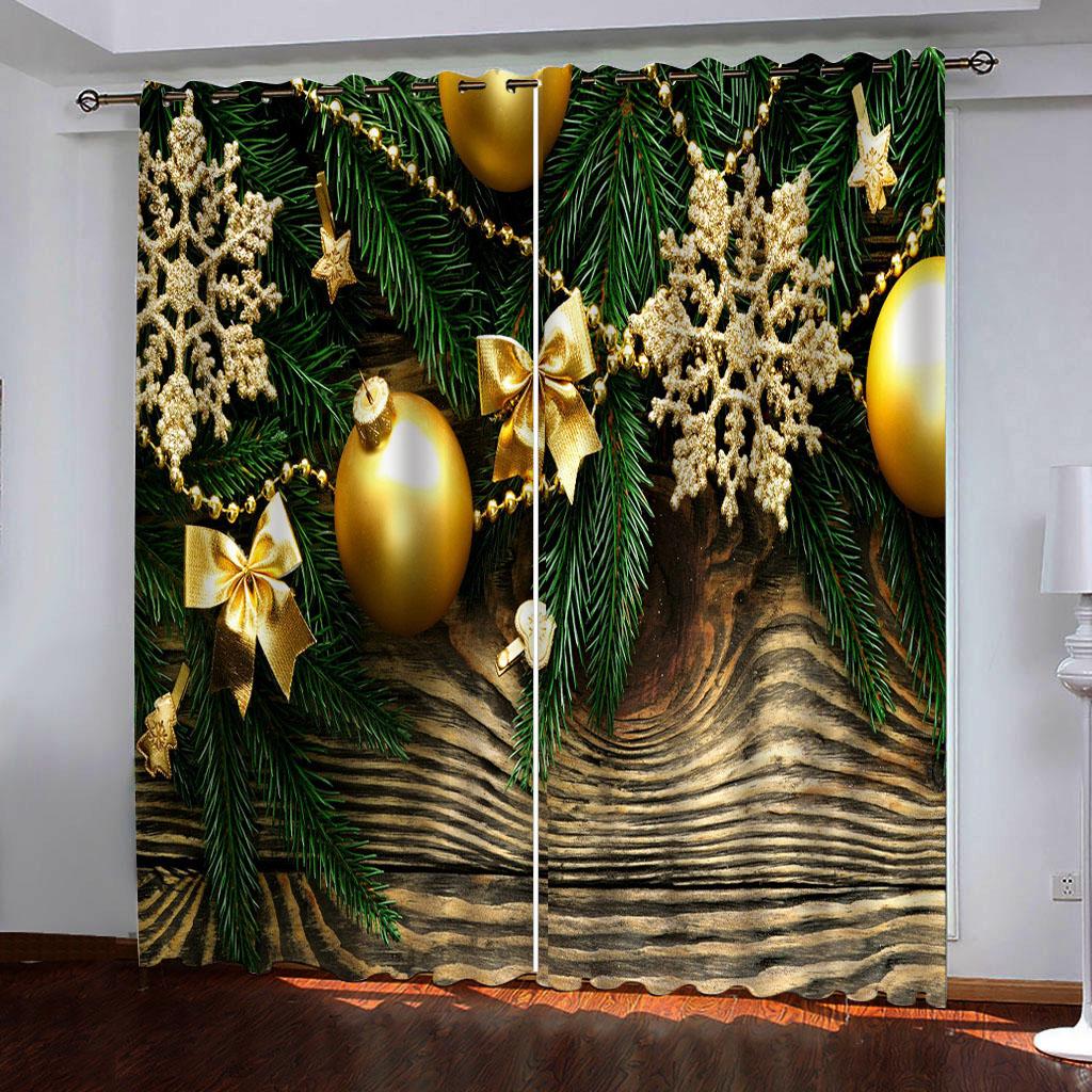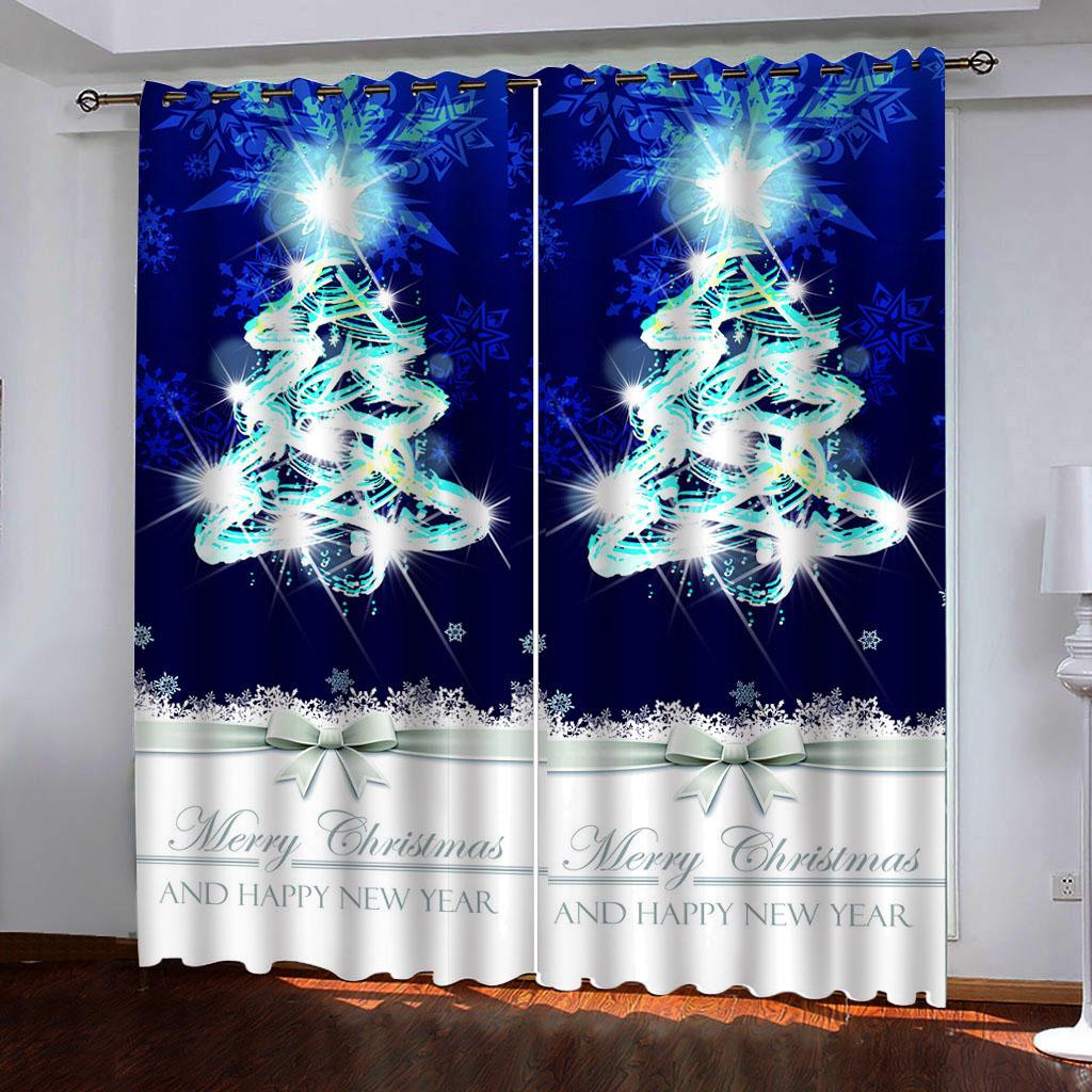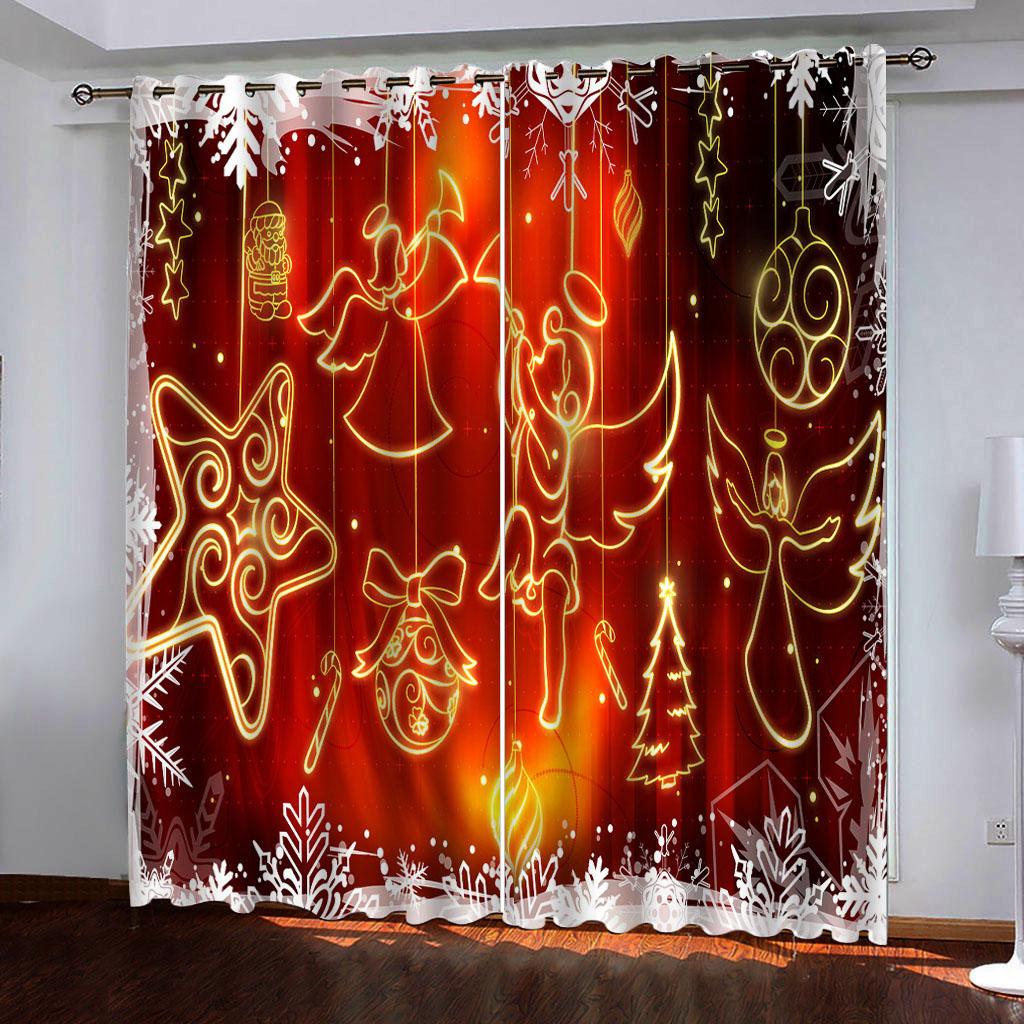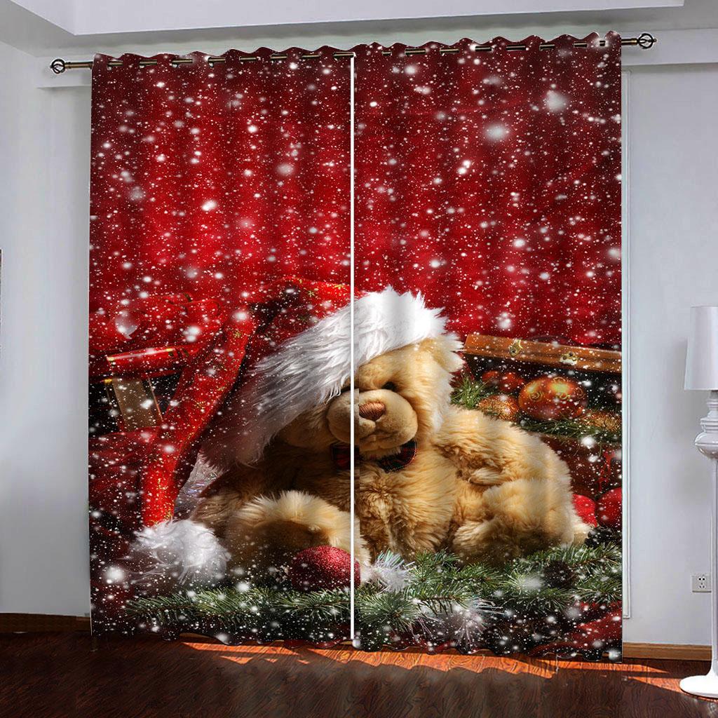 2 красные полузатемняющие шторы с принтом Санты, зимние снежинки, праздничный полиэстер, подходящие для гостиной, кухни, спальни