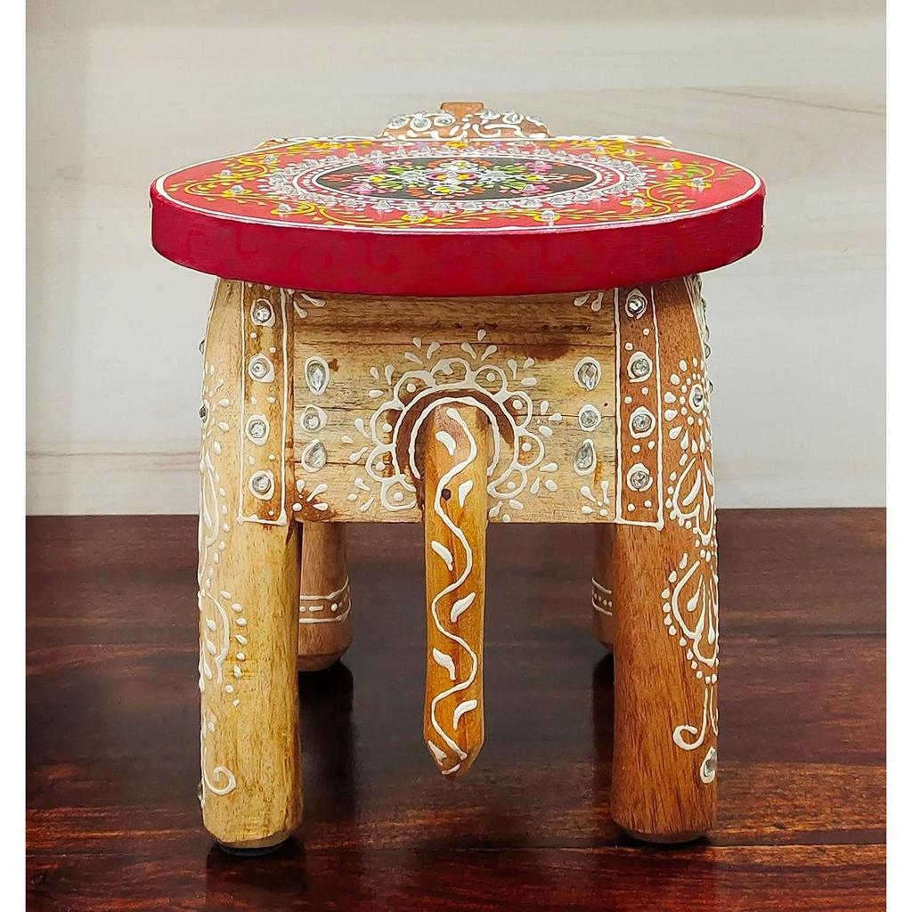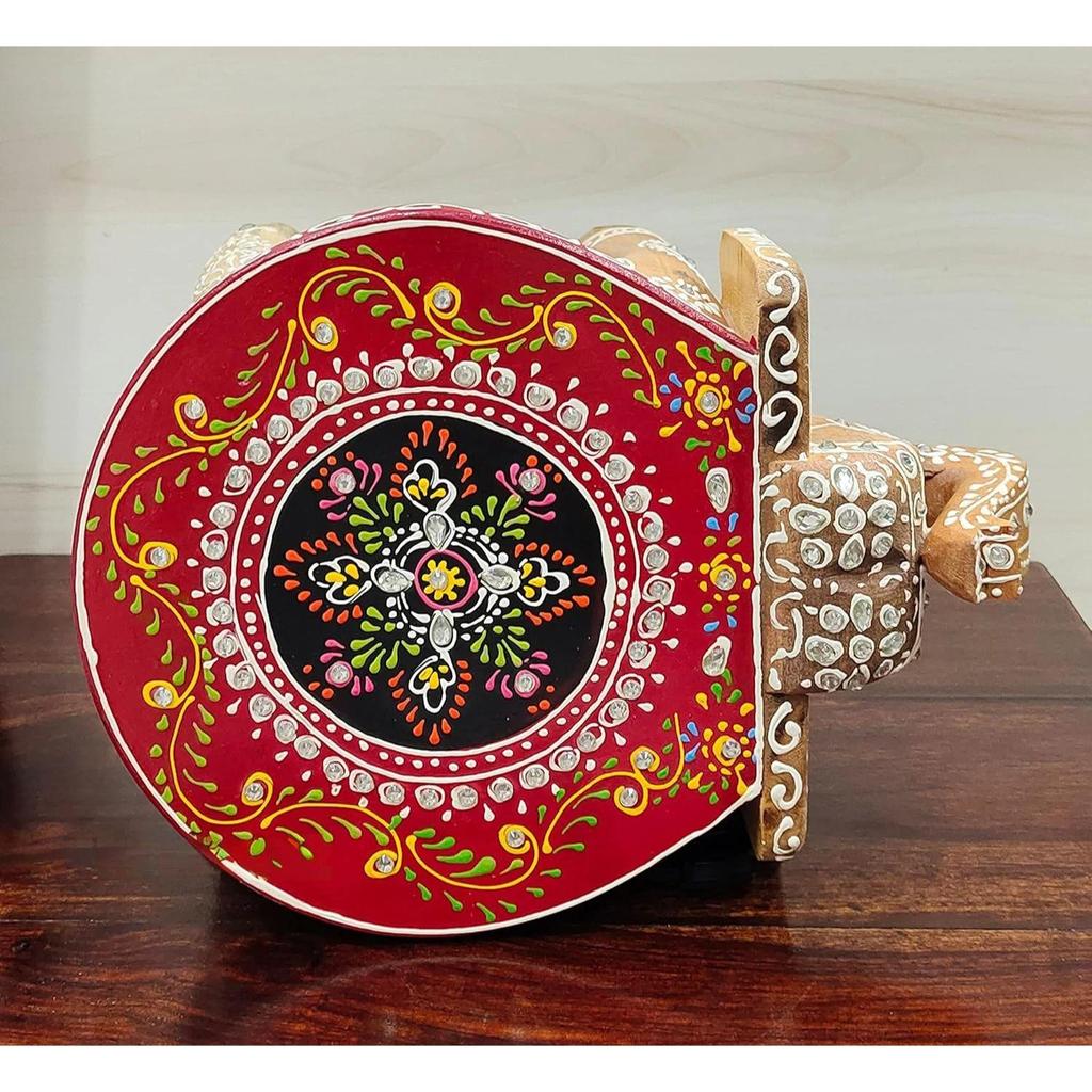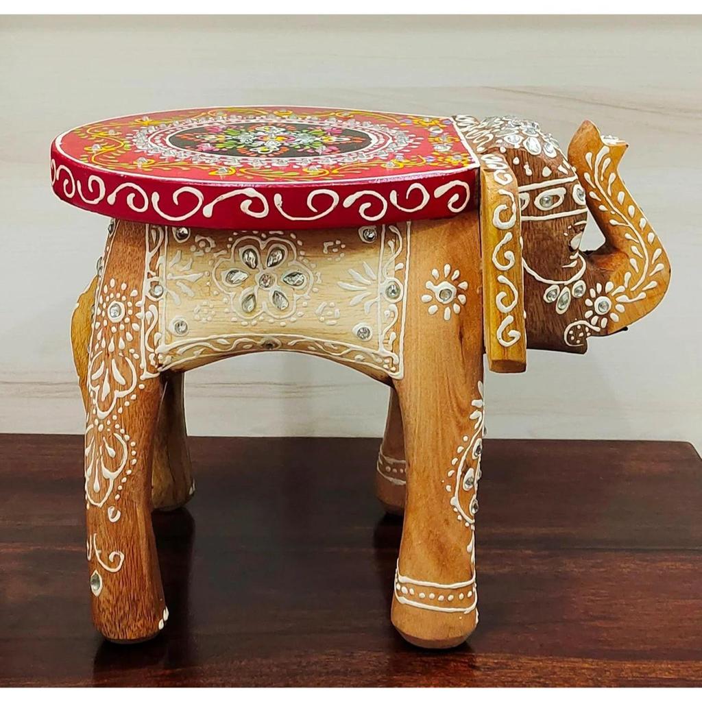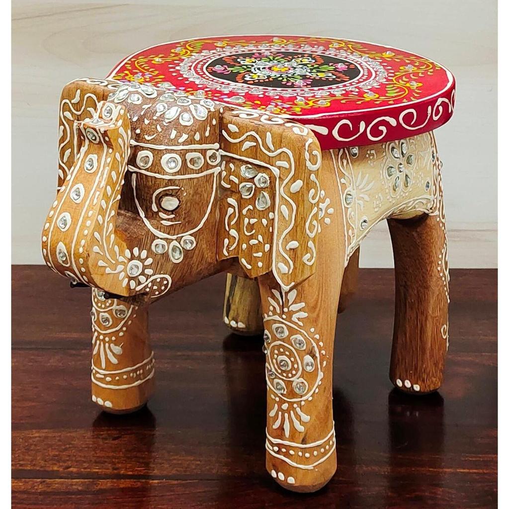 Деревянная роспись Декоративный табурет в виде слона в раджастанском стиле | Декоративные элементы для дома | Выставочный образец(8 дюймов) (горчичный)