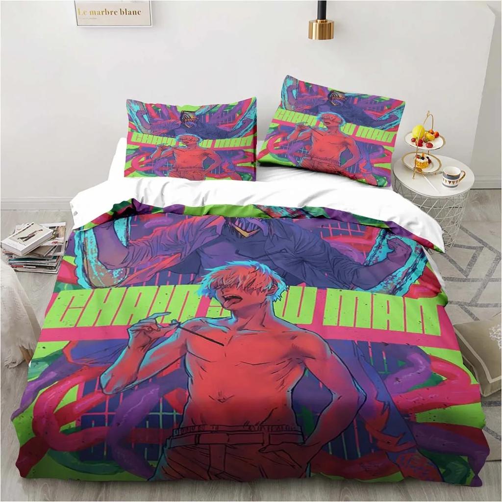Постельное белье с изображением человека-бензопилы, милый комплект постельного белья с изображением аниме-мультфильма, комплект из 3 предметов, пододеяльник, двуспальный чехол, домашний текстиль