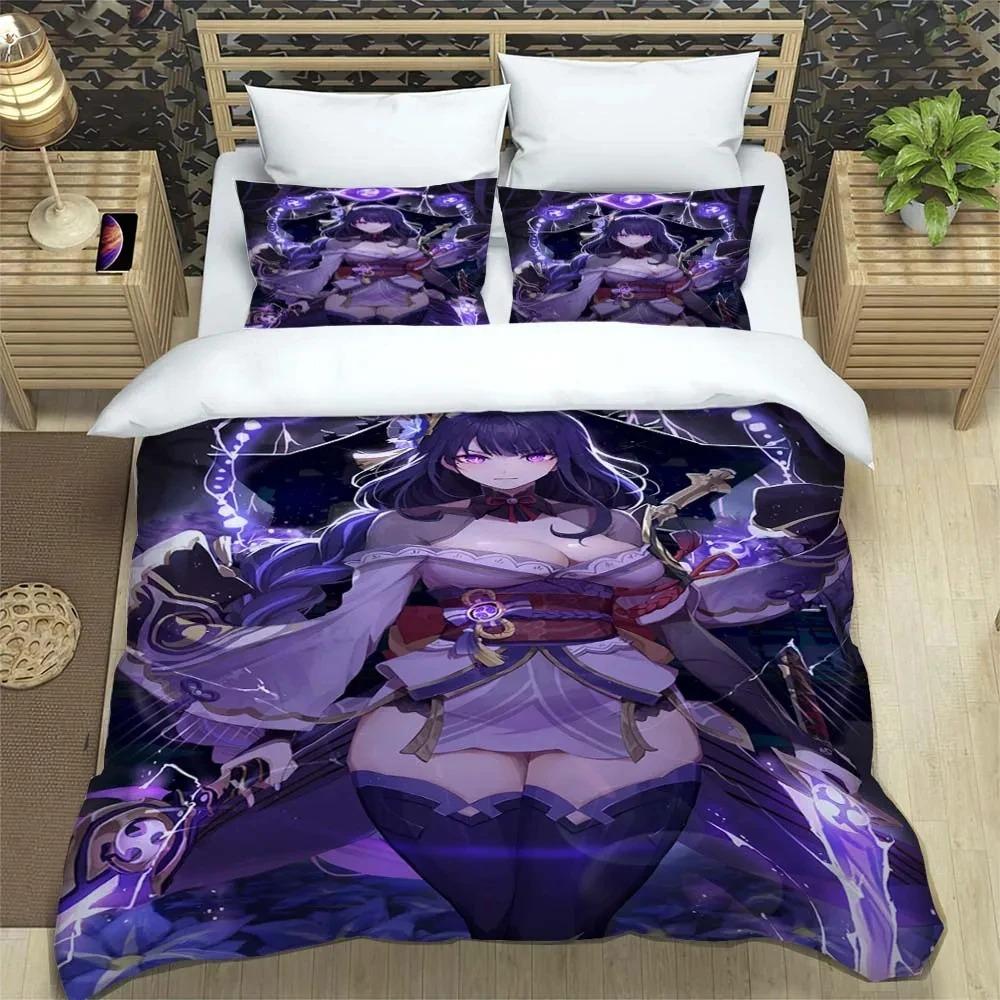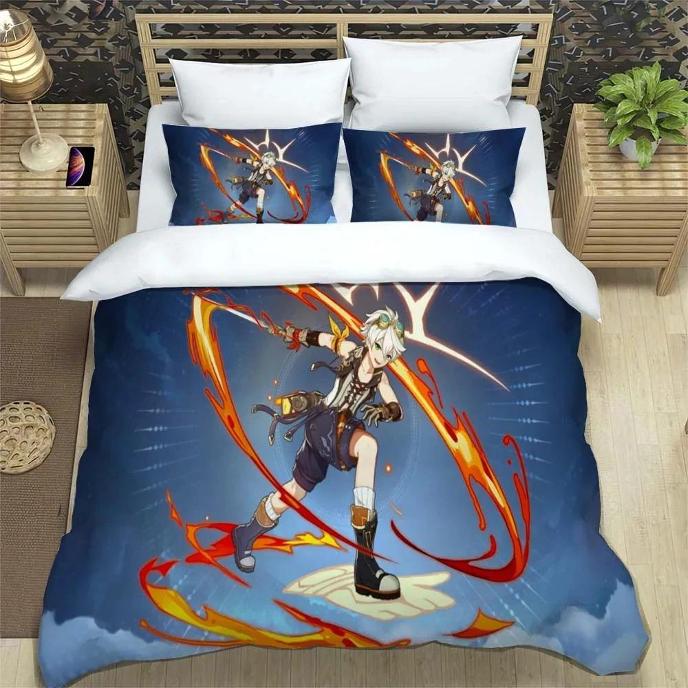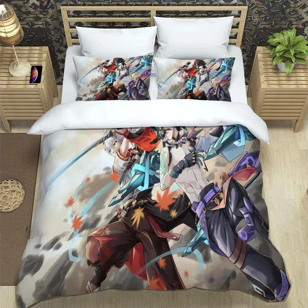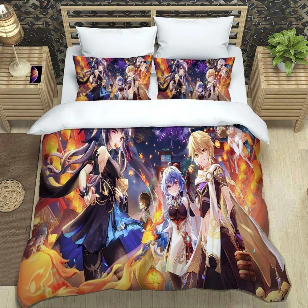 Мягкий и удобный комплект постельного белья Genshin Impact Animation Cartoon, роскошное одеяло, настраиваемые комплекты постельного белья