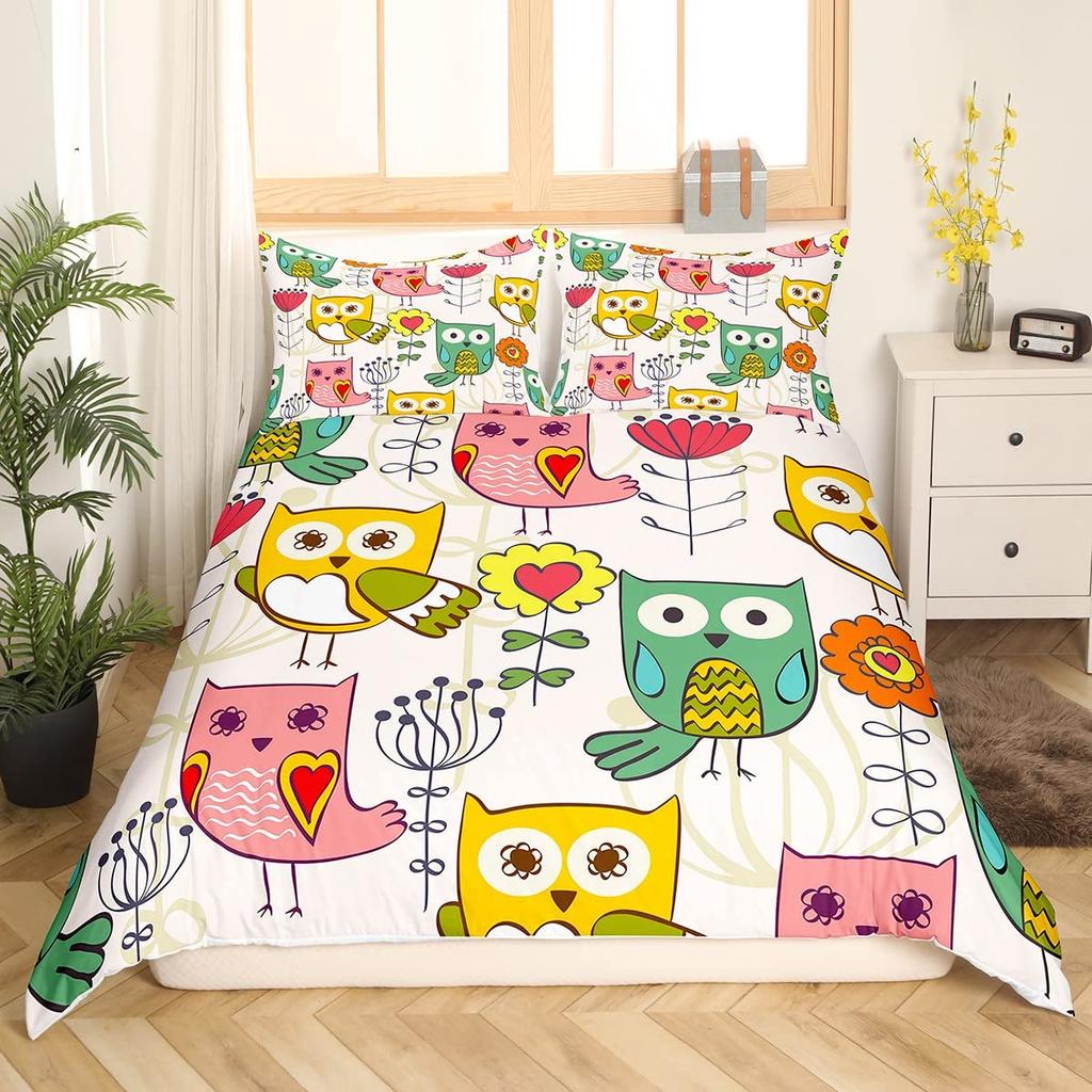 Пододеяльник с изображением совы King Queen, серый, милый комплект постельного белья с изображением животных, розовый, оранжевый, серый, цветы, чехол для одеяла, полиэстер, пододеяльник