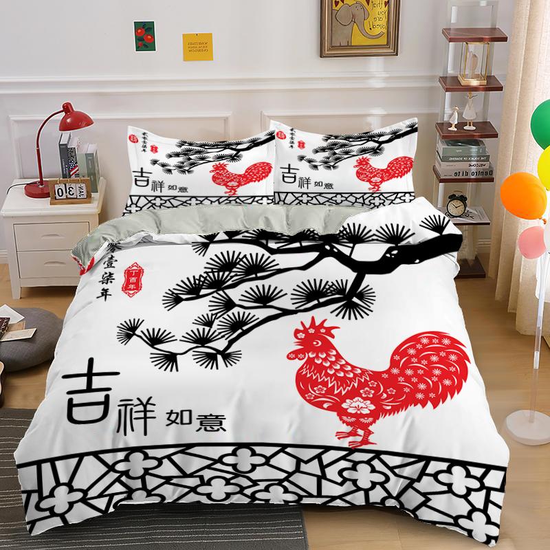 Пододеяльник в китайском стиле King Queen, праздничный комплект постельного белья с изображением красной птицы и собаки, новогодний пододеяльник из полиэстера