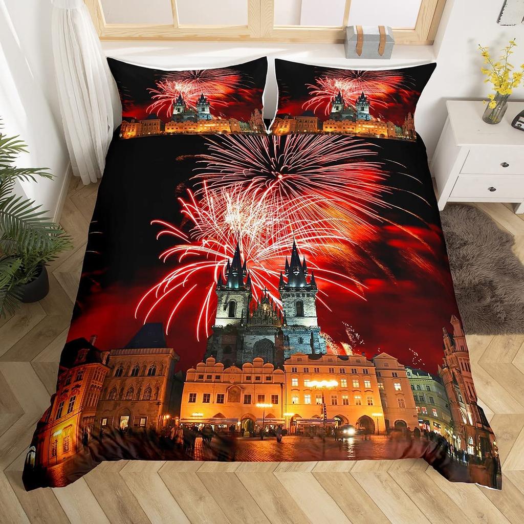 Пододеяльник с изображением фейерверка, комплект постельного белья Fantasy Castle, комплект постельного белья Prague Cityscape, комплект постельного белья из микрофибры с изображением магических психоделических цветов