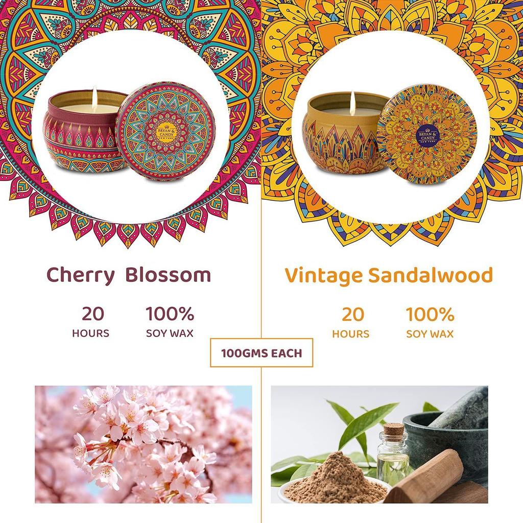 Винтажные сандаловые свечи, ароматерапевтические свечи, соевый воск, экологически чистые печатные банки | Свечи для домашнего декора