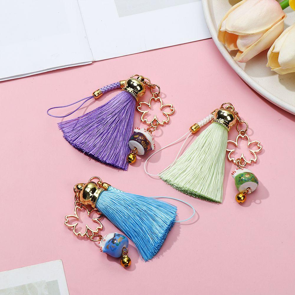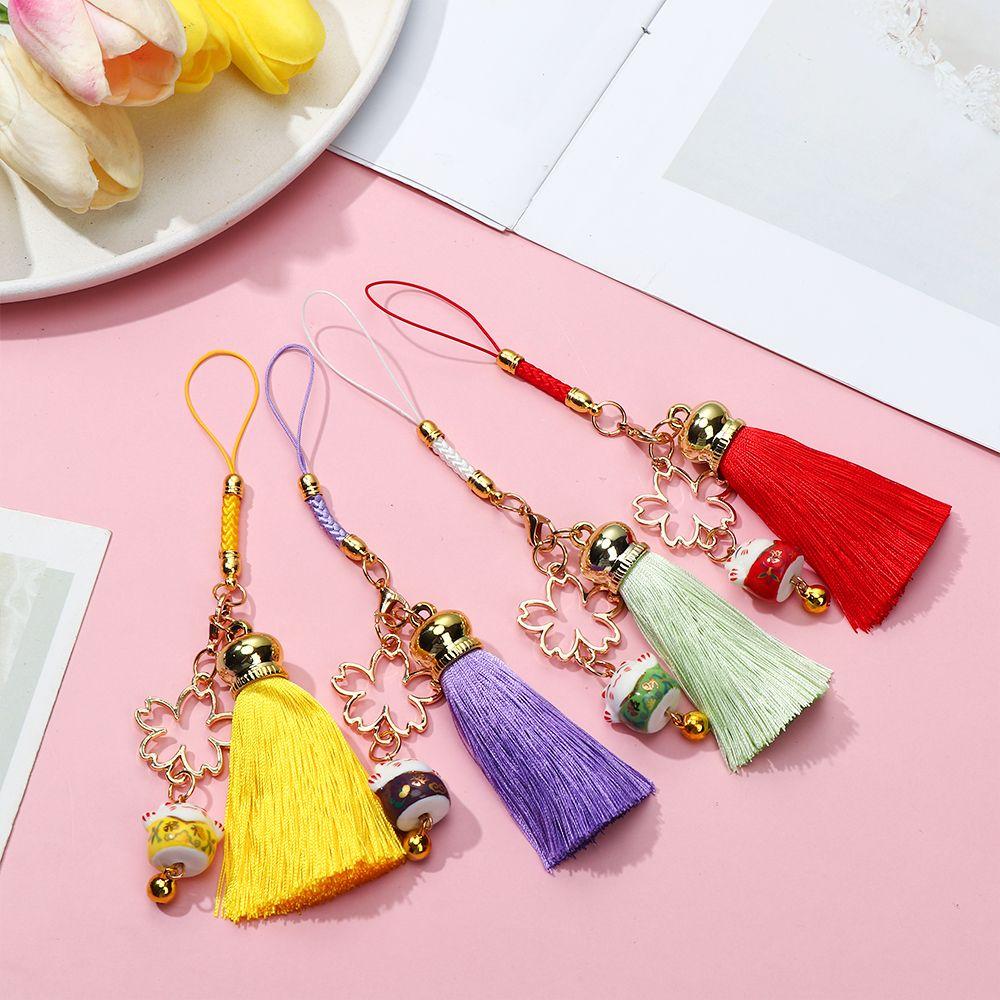 Подвеска для телефона на веревке Lucky Cat Cherry Blossom Bell Tassel Мобильный телефон Ремешок для сумки Подвеска для мобильного телефона на веревке