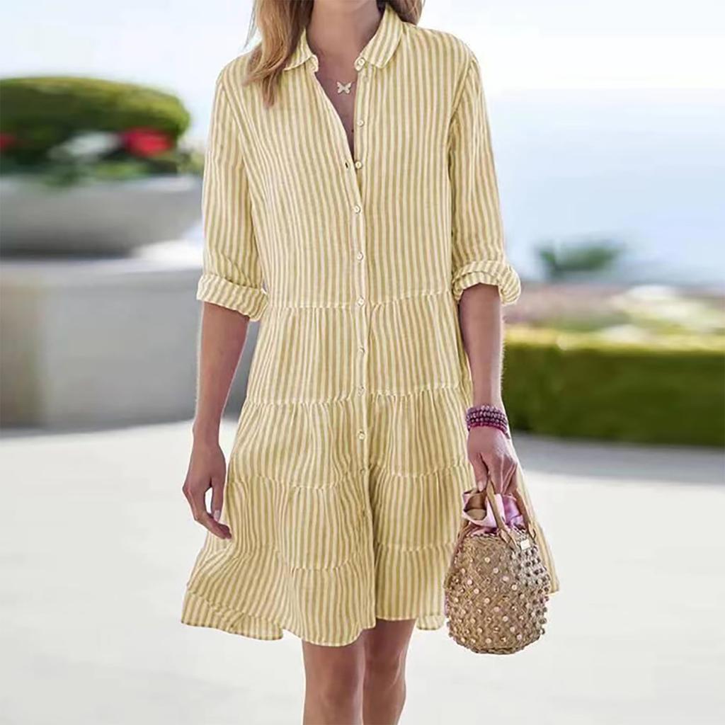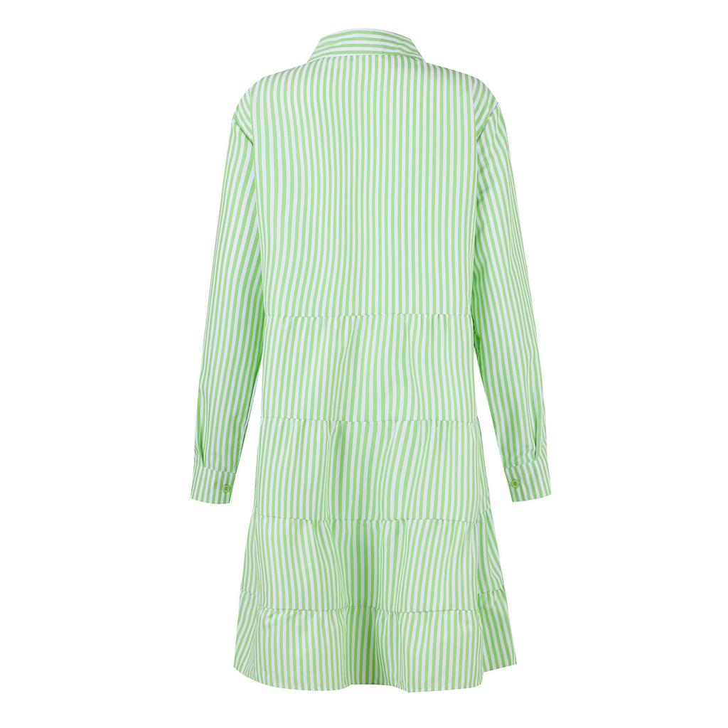 Женские платья, повседневное платье-рубашка с длинным рукавом в полоску и отворотом, модное вечернее платье