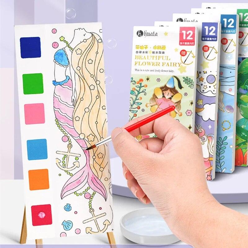 Детская портативная акварельная книга для рисования, 12 листов, гуашь, граффити, рисунок, 1 ручка, раскраска, набор книг для рисования водой, детские игрушки, подарки