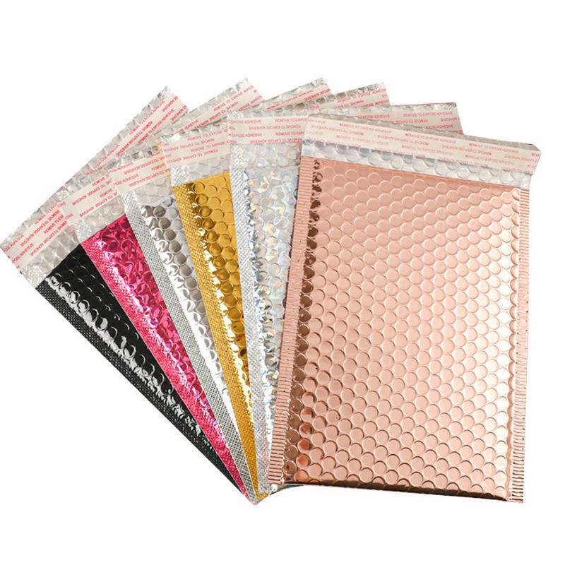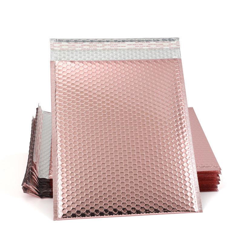 10 шт., розово-золотистый почтовый пакет с пузырьками, алюминиевый пакет, лазерный конверт, самозапечатывающийся почтовый подарочный упаковочный пакет, утолщенный ювелирный пакет 18*23 см