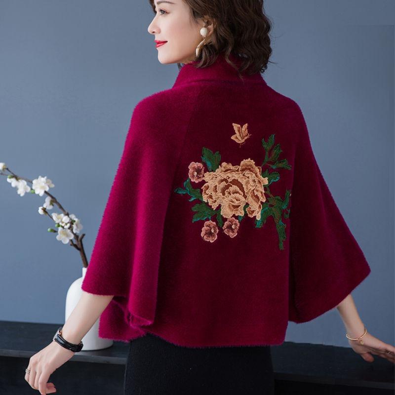 Осенне-зимний теплый маленький плащ модный и универсальный женский плащ с круглым вырезом и вышивкой