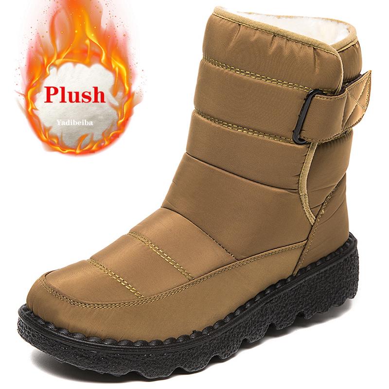Зимние женские ботинки, непромокаемые женские зимние сапоги на платформе, сохраняющие тепло ботильоны на толстом меху, женская зимняя обувь на низком каблуке, размер 36-43