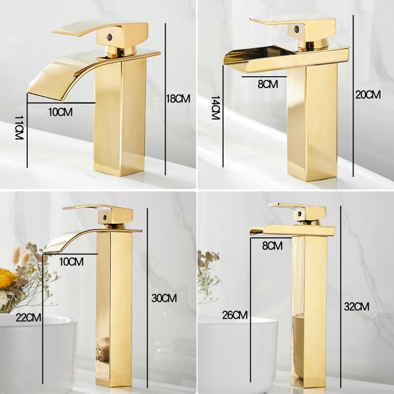 Смеситель для раковины Золотой водопадный кран Смеситель для ванной комнаты Смеситель для унитаза Смеситель для раковины с горячей и холодной водой