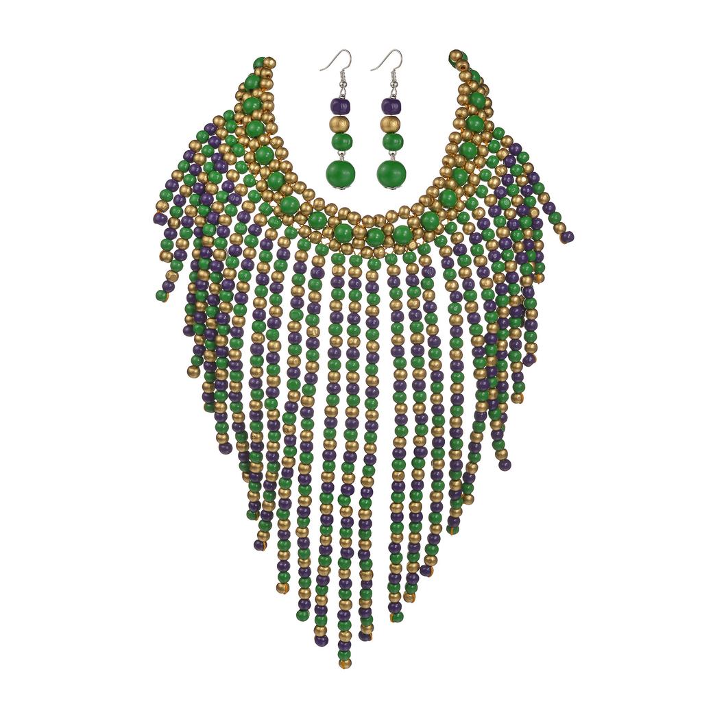 Модные преувеличенные ручные плетеные бусины короткие ожерелья серьги комплект, ожерелье ювелирные изделия для женщин