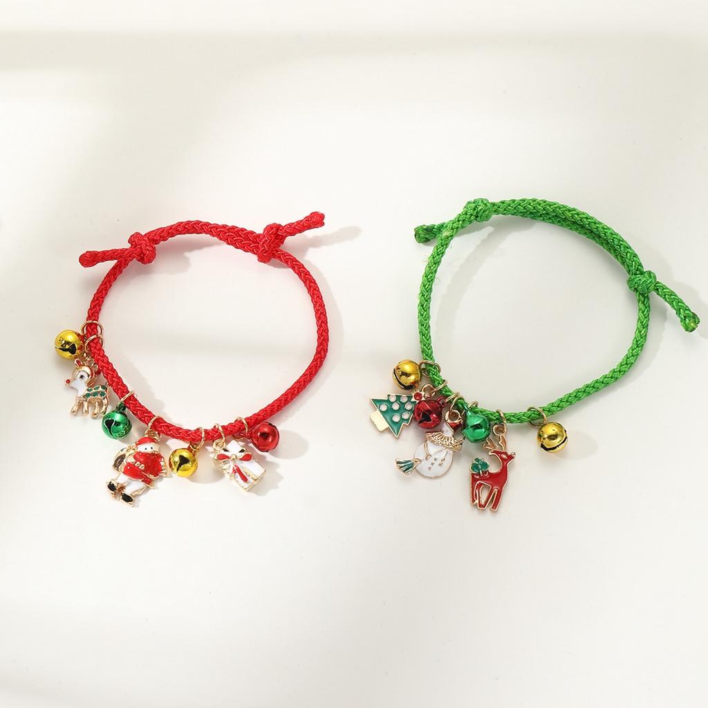Рождественский браслет с колокольчиком лося для пары, регулируемый браслет с мультяшной масляной каплей в виде трости Санты