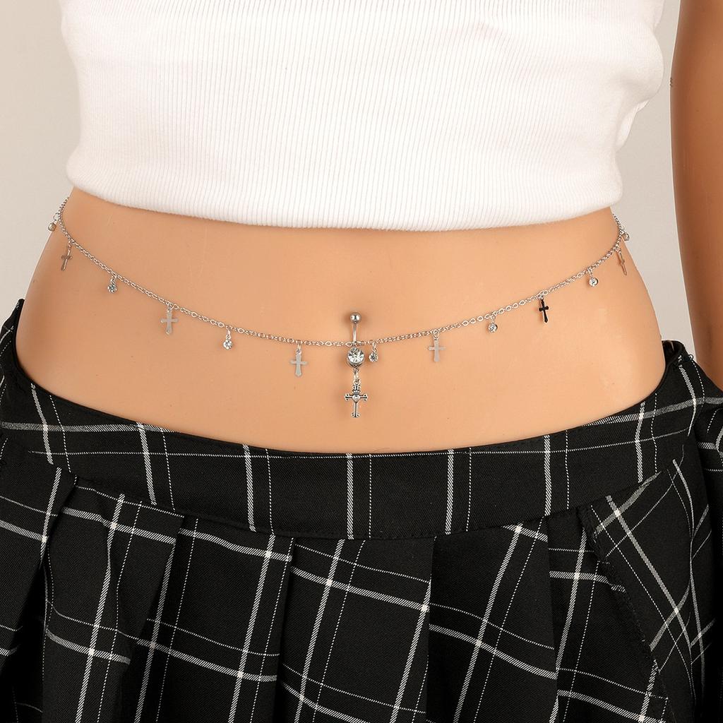 Модная персонализированная цепочка для пупка с бриллиантами, простая цепочка с бахромой из стразов, геометрическая цепочка на талию, ювелирные изделия
