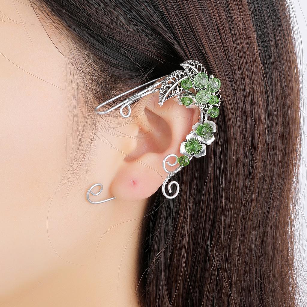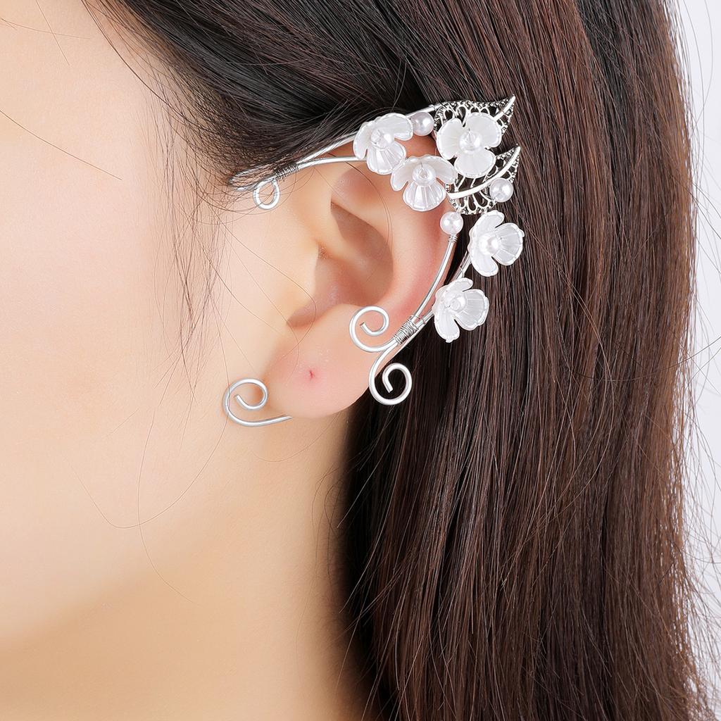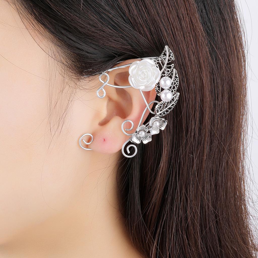 Серьги в стиле ретро без ушей, цветочные косточки для ушей, веточки роз, эльфийские бахромчатые ушные висячие ушные клипсы