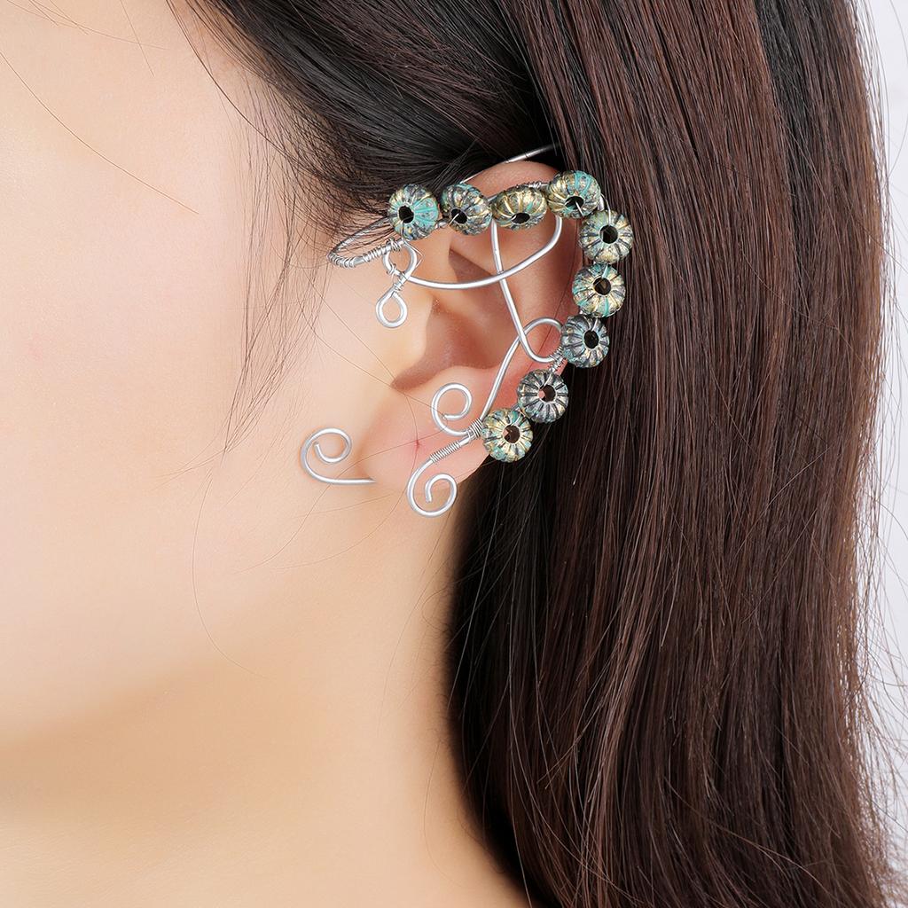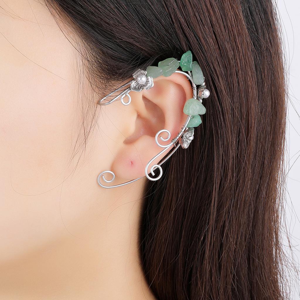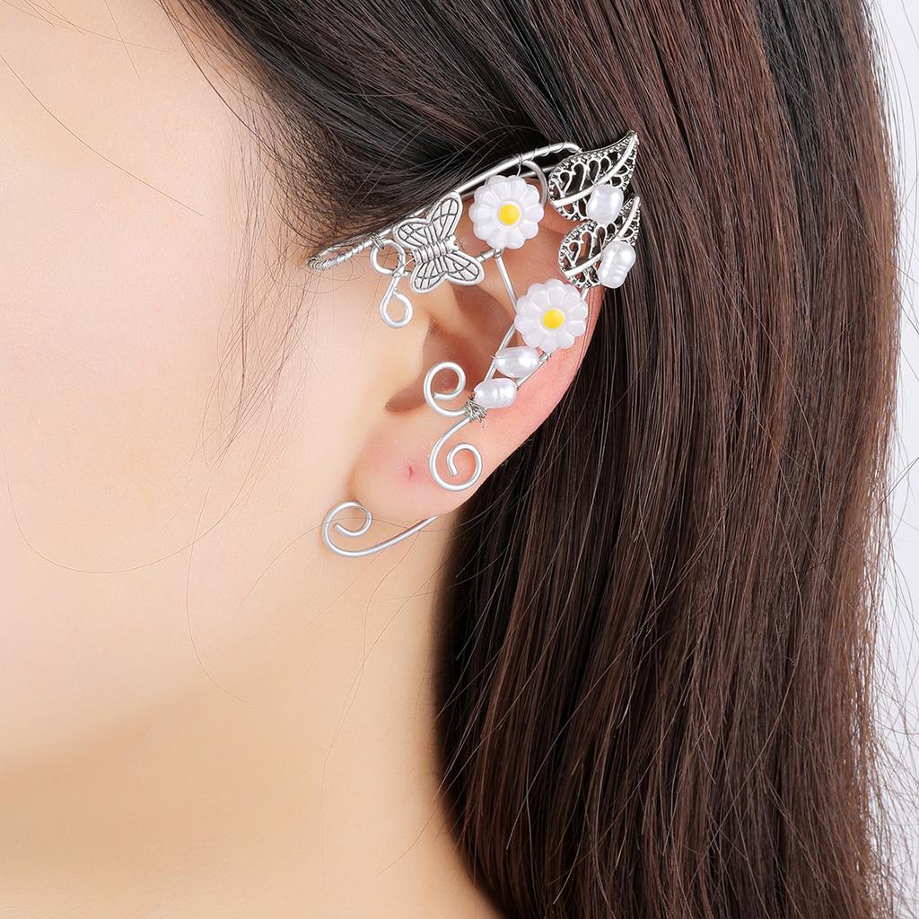 Серьги в стиле ретро без ушей, цветочные косточки для ушей, веточки роз, эльфийские бахромчатые ушные висячие ушные клипсы