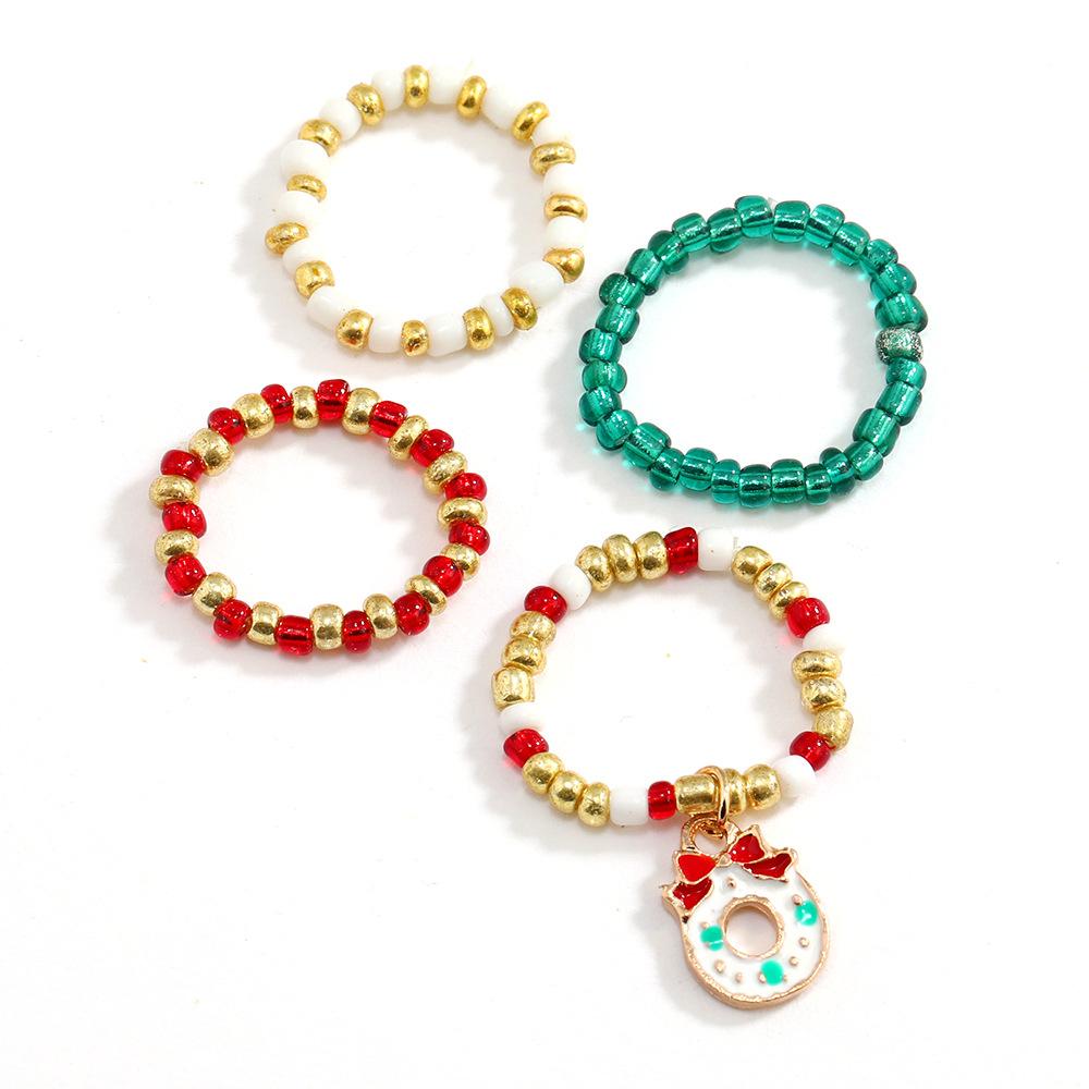 Наименование товара: Рождественская серия цветные рисовые бусины комплект из 4 колец, европейское и американское трансграничное хит продаж, новое модное эластичное кольцо для женщин
