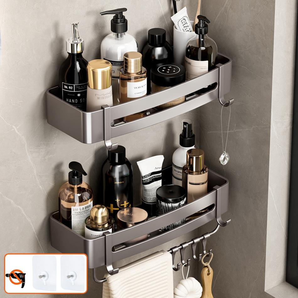 Прямоугольная полка для ванной комнаты, алюминиевая, серая, для туалета, кухни, для ванной, для хранения шампуня, мыла, треугольная полка с крючками, бесплатный гвоздь