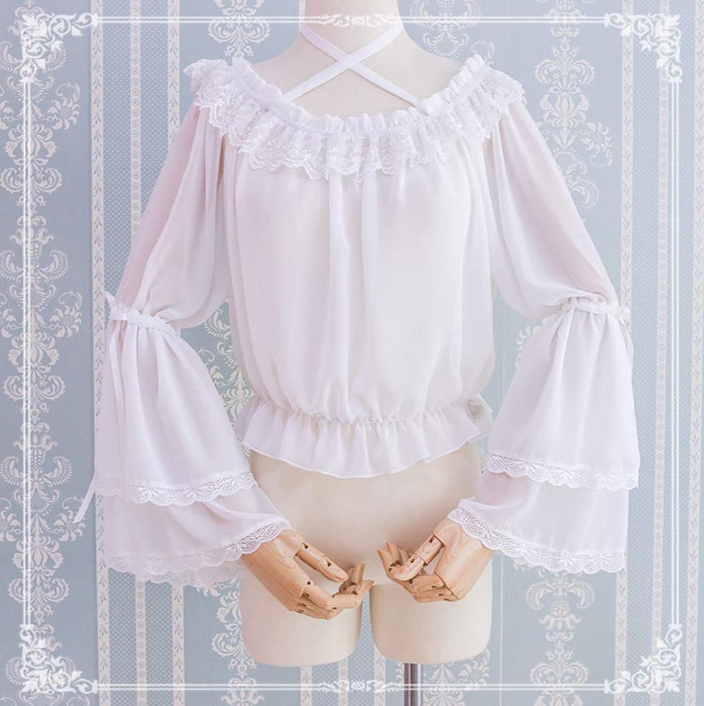 [Специальный дизайн] Топ в стиле Лолиты с рукавами принцессы и впечатляющим перекрестным вырезом горловины.. Широкие расклешенные рукава добавят роскоши вашему платью или юбке-джемперу.. Эта вещь рекомендуется тем, кто ищет блузку!