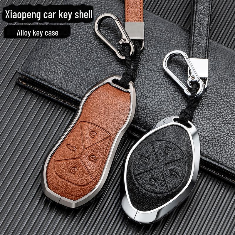 Кожаный чехол для ключа автомобиля с хорошим сигналом для Xiaopeng P7 G9 G3 P5 - Металлический, полная защита, двусторонняя защита