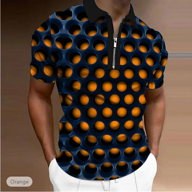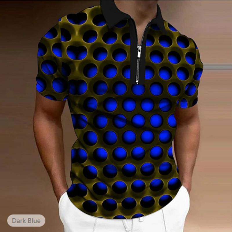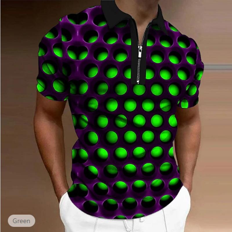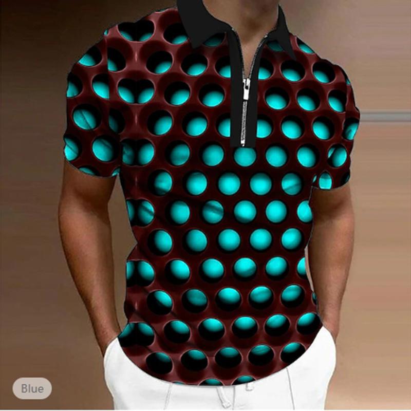 Повседневная футболка с лацканами, молодежная модная футболка с застежкой-молнией, футболка с коротким рукавом, мужская футболка с цветным принтом в виде 3D-круговых отверстий