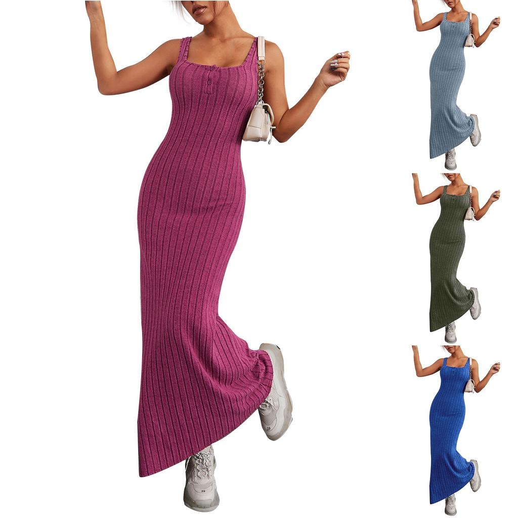 Женские летние повседневные длинные платья без рукавов с пуговицами на шее, облегающие платья с эластичным кроем — купить товар онлайн с бесплатной доставкой по всему миру!