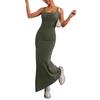 Женские летние повседневные длинные платья без рукавов с пуговицами на шее, облегающие платья с эластичным кроем