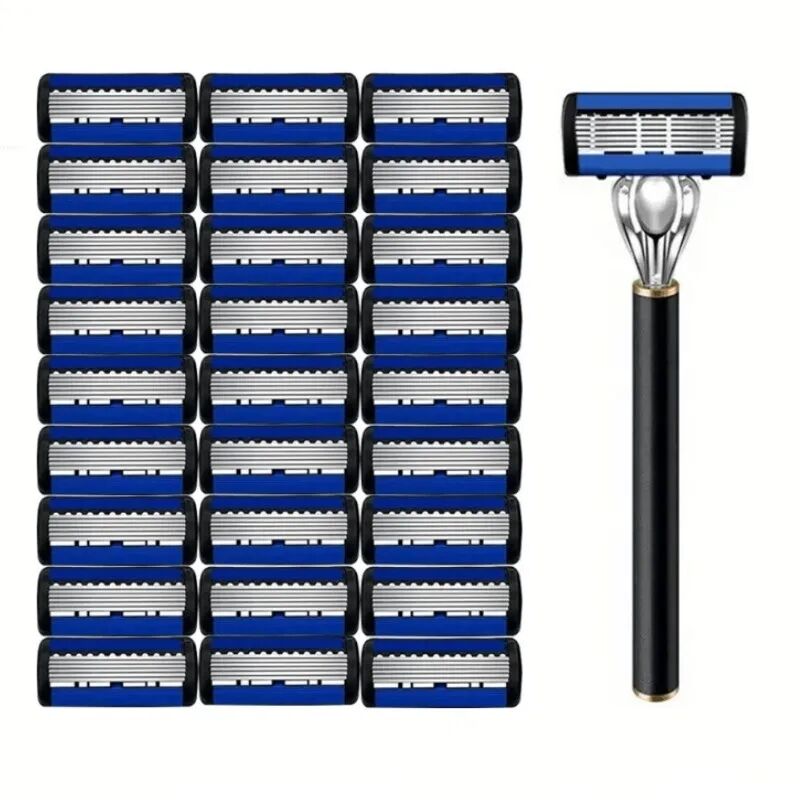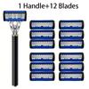6-слойное лезвие бритвы, классическая бритва многоразового использования, черная бритва со сменным лезвием, безопасная мужская ручная бритва