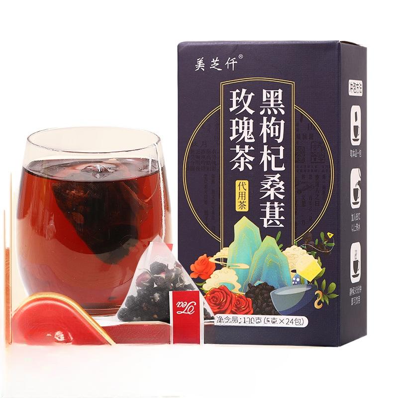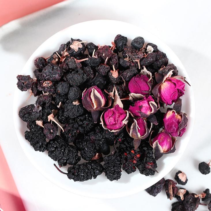 Черные ягоды годжи, шелковица, розовый чай
