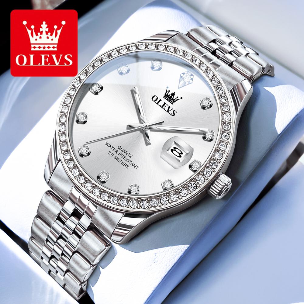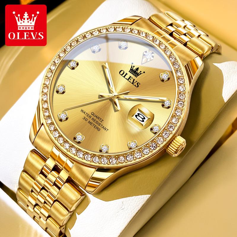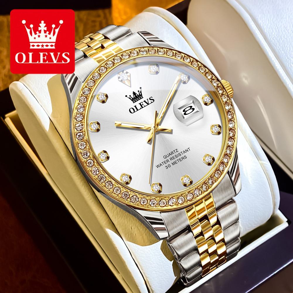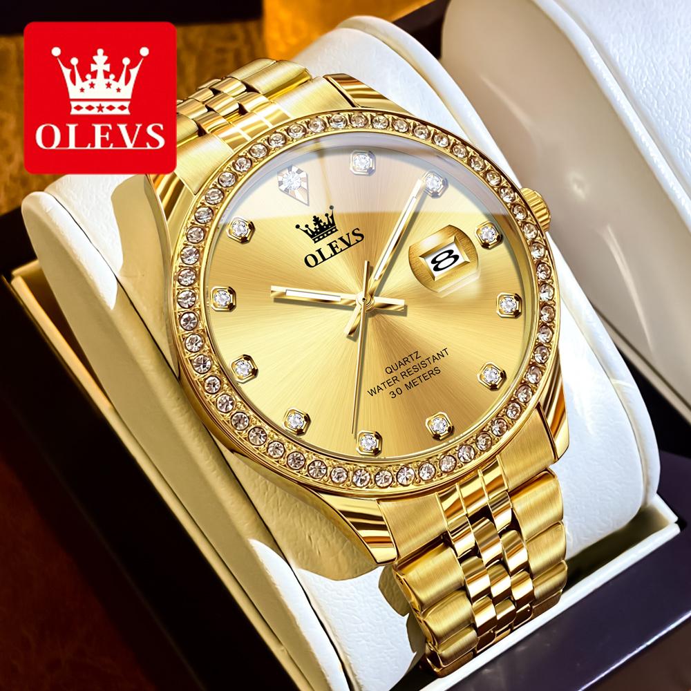 ※Мужские кварцевые часы с полностью бриллиантовым циферблатом и окошком календаря, модные деловые часы.