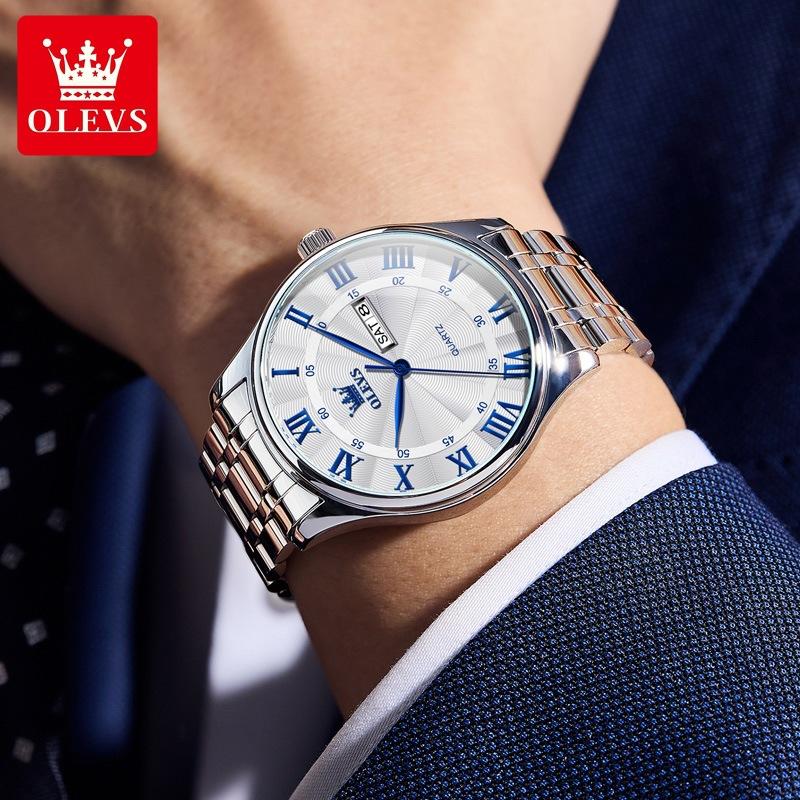 ※Мужские кварцевые часы в минималистичном деловом стиле, креативный циферблат с двойным календарем, отображение недельного календаря.