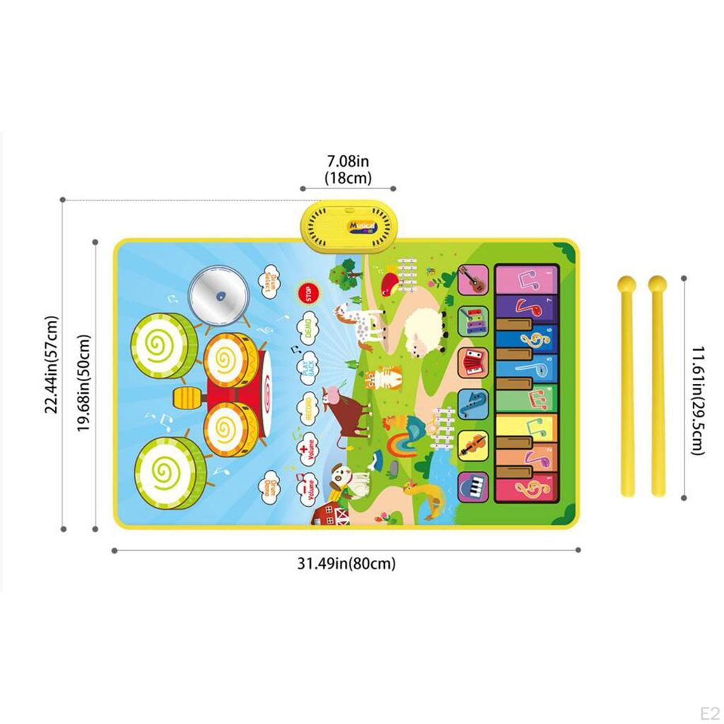 - 【Музыкальный коврик для младенцев】: Этот детский музыкальный игрушечный коврик для фортепиано и барабанный коврик с 2 барабанными палочками отлично подходят для развития музыкального интереса ребенка.