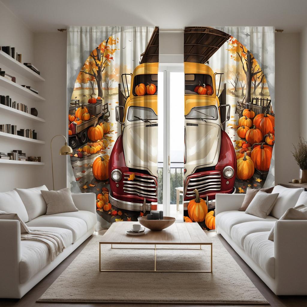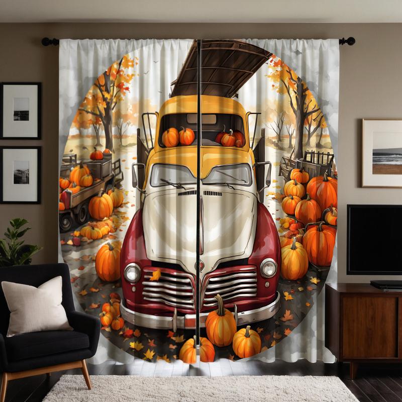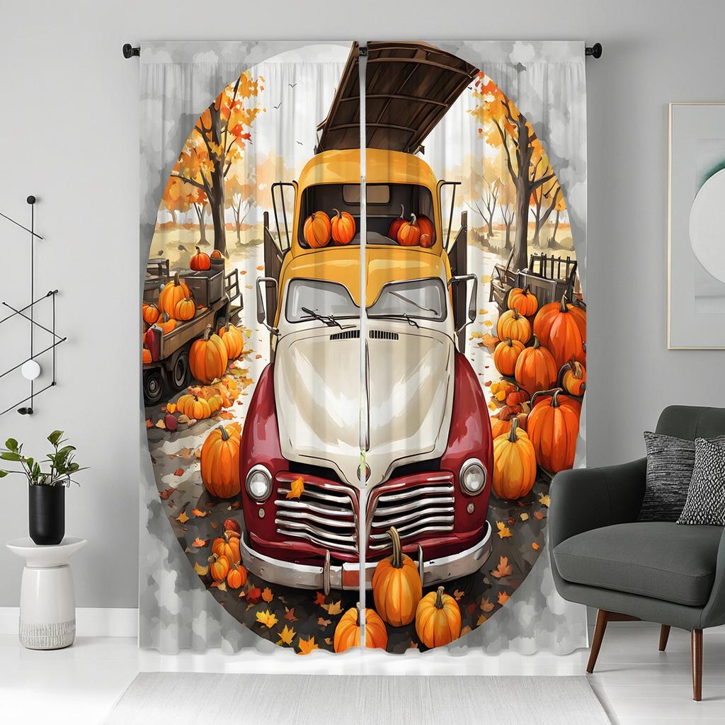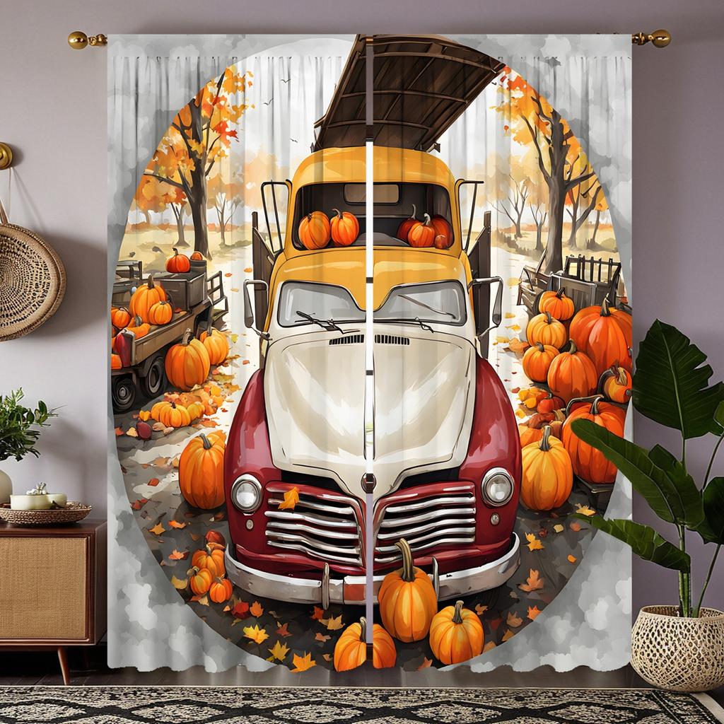 2 шт. HD Harvest Festival Pumpkin винтажная автомобильная занавеска в кленовом лесу Желтая завязка цифровая печать занавеска для украшения дома s