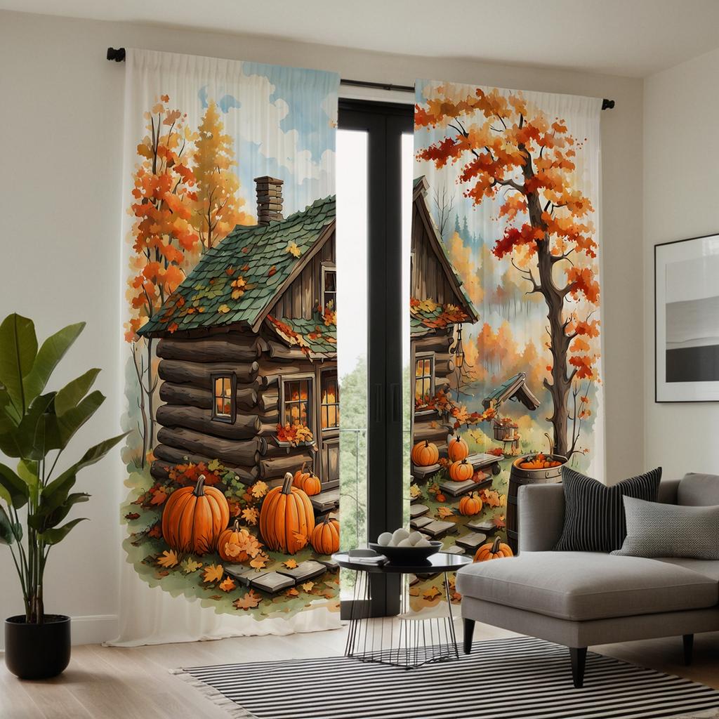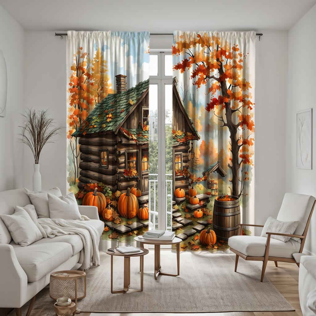 2 шт. HD Harvest Festival Small House Maple Leaf Pumpkin декоративная занавеска Желтая завязка цифровая печать занавеска украшение для дома
