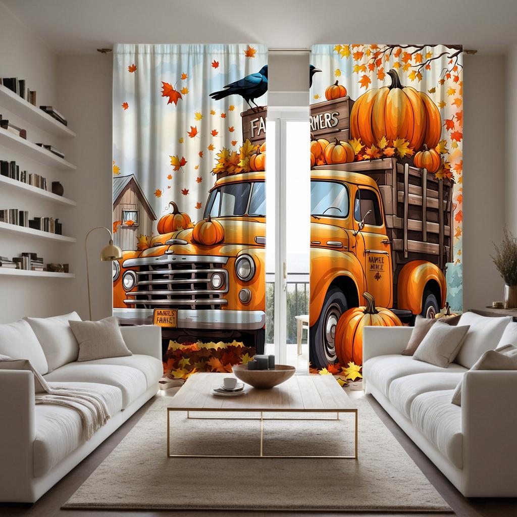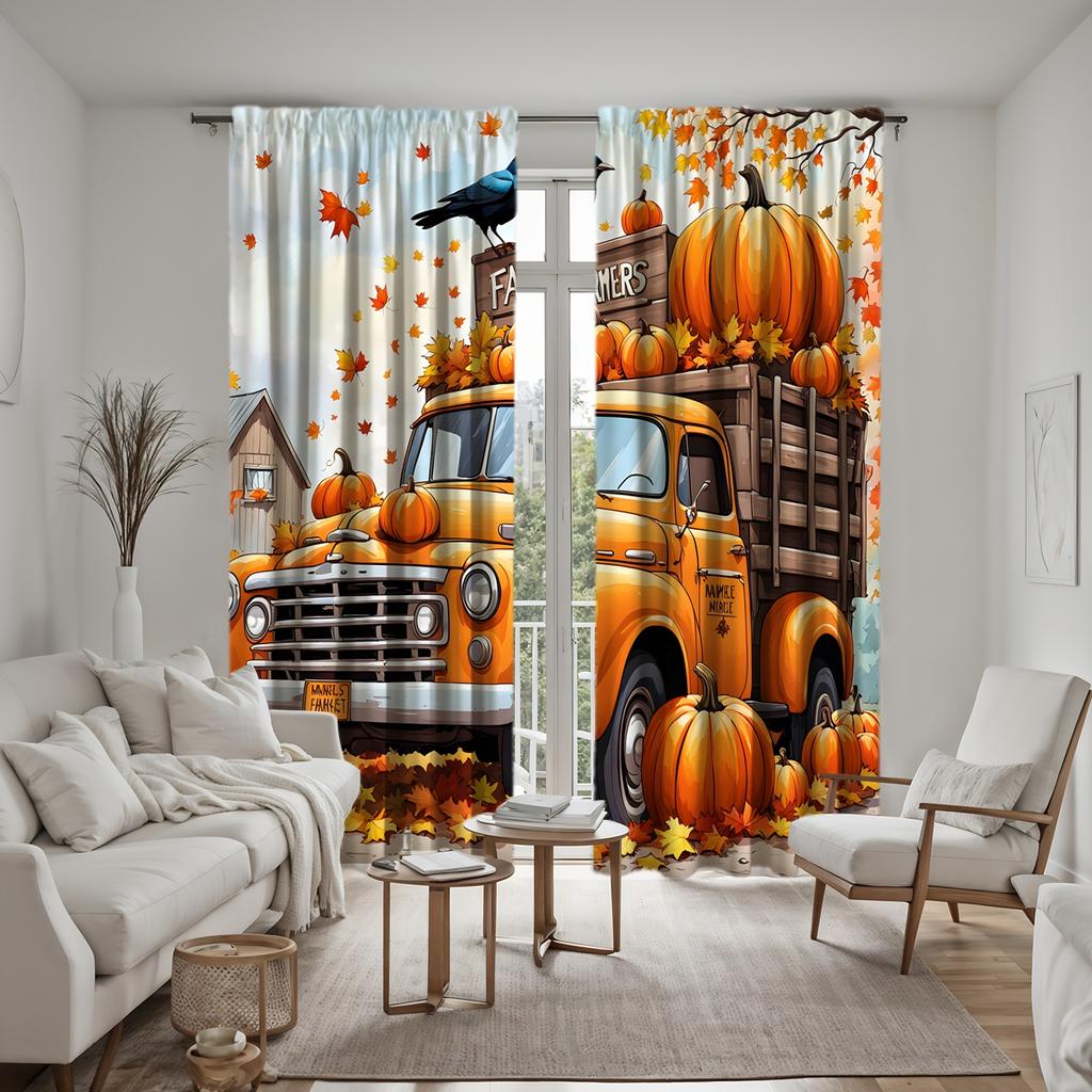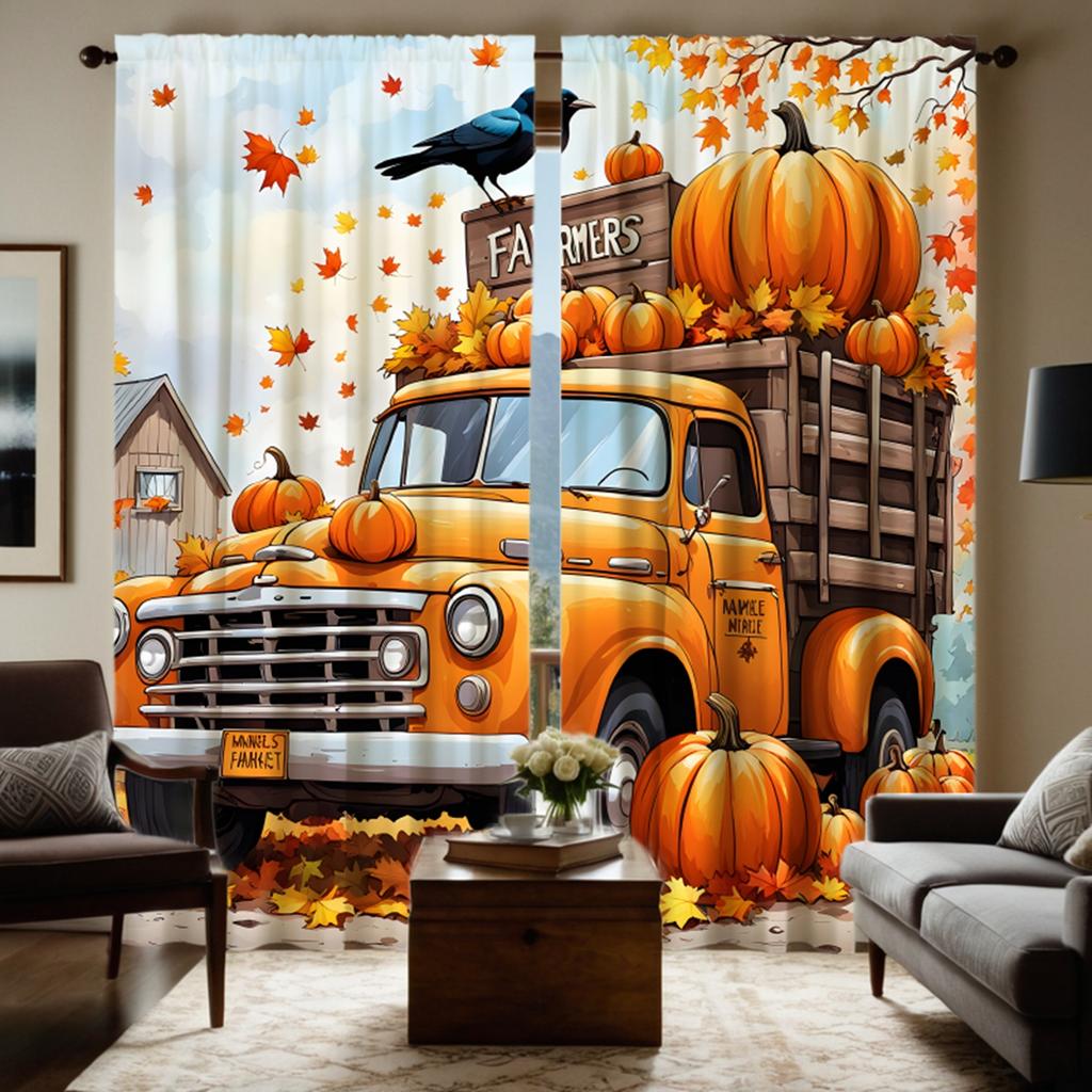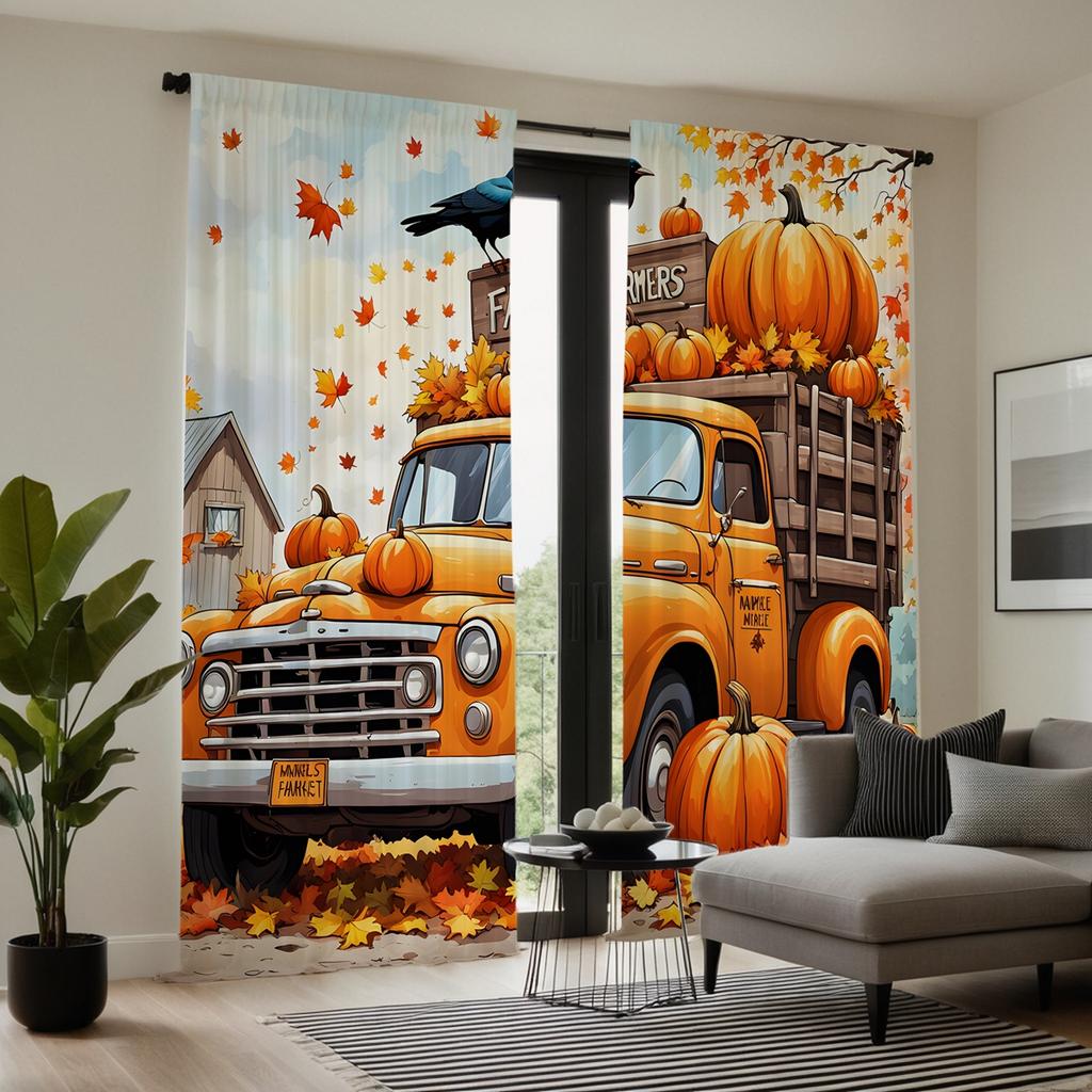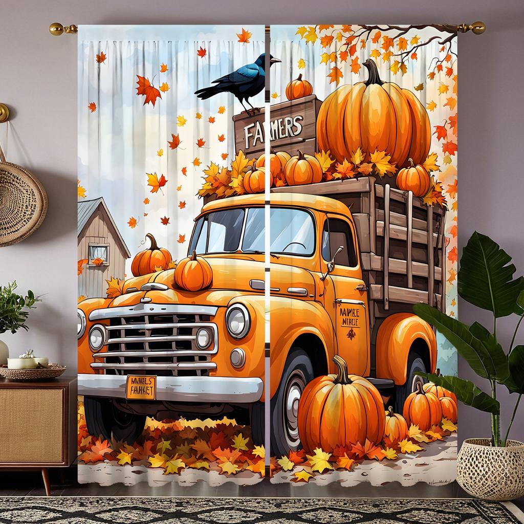 2 шт. HD Осенний грузовик с тыквой Кленовый лист щебечущие птицы декоративная занавеска Желтая завязка цифровая печать занавеска для домашнего декора хлев