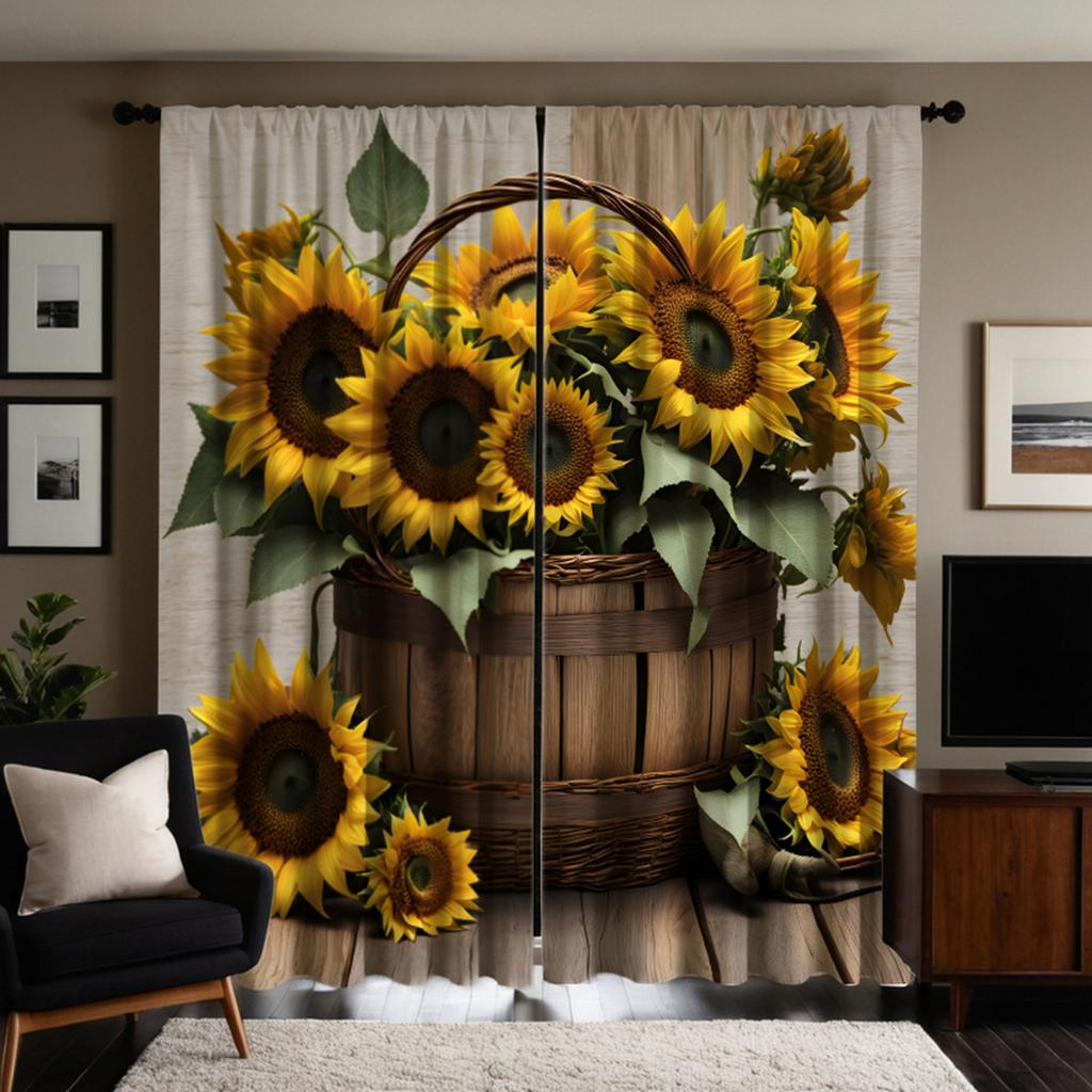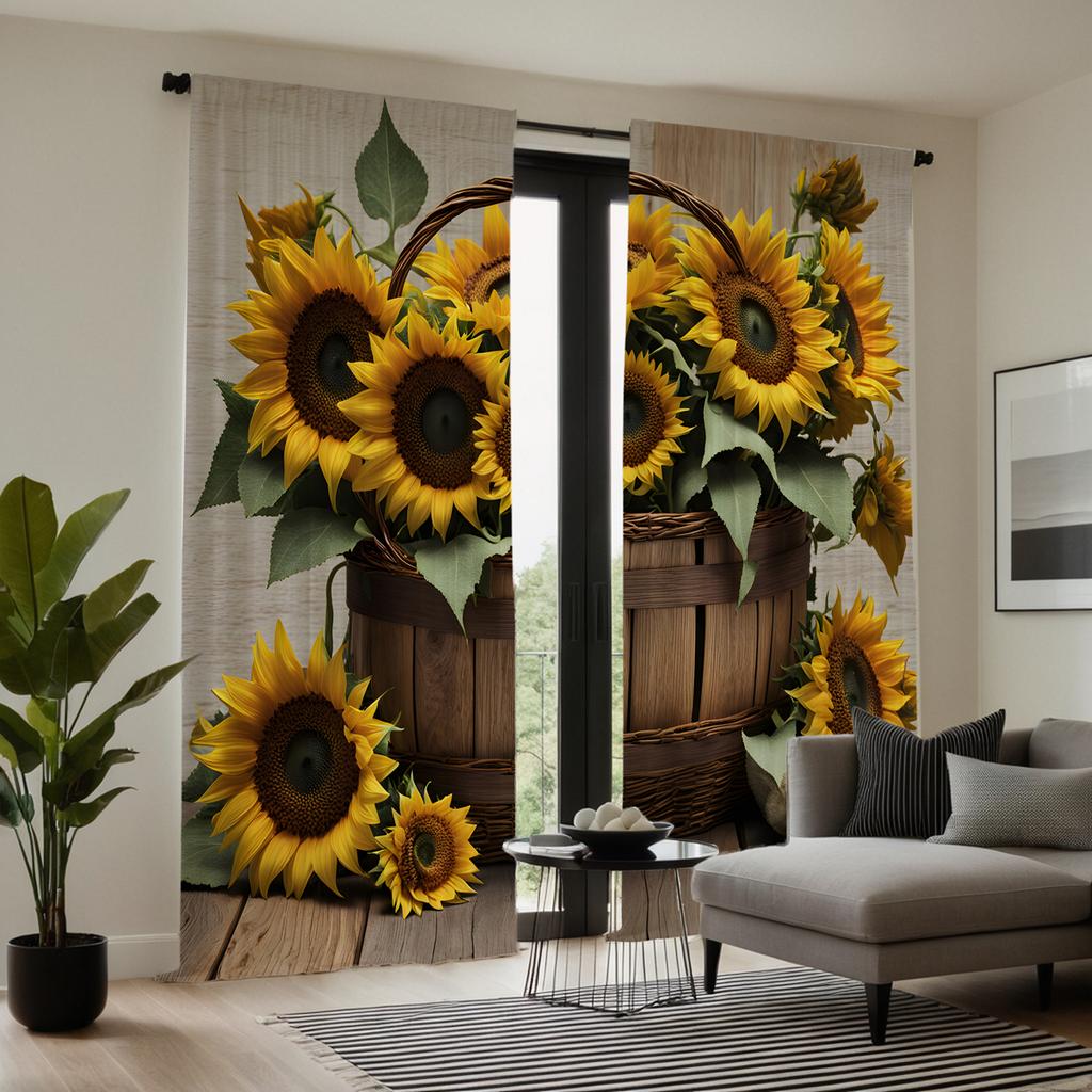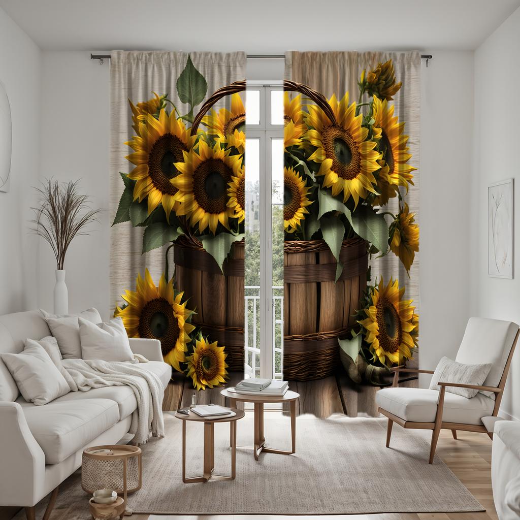 2 шт. корзины HD с цветами подсолнуха декоративная штора Желтая штора с цифровой печатью украшение дома стиль украшения