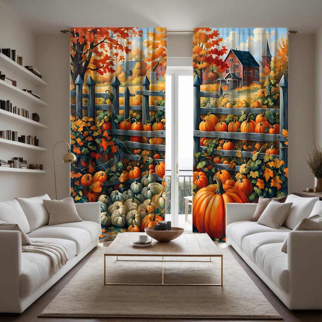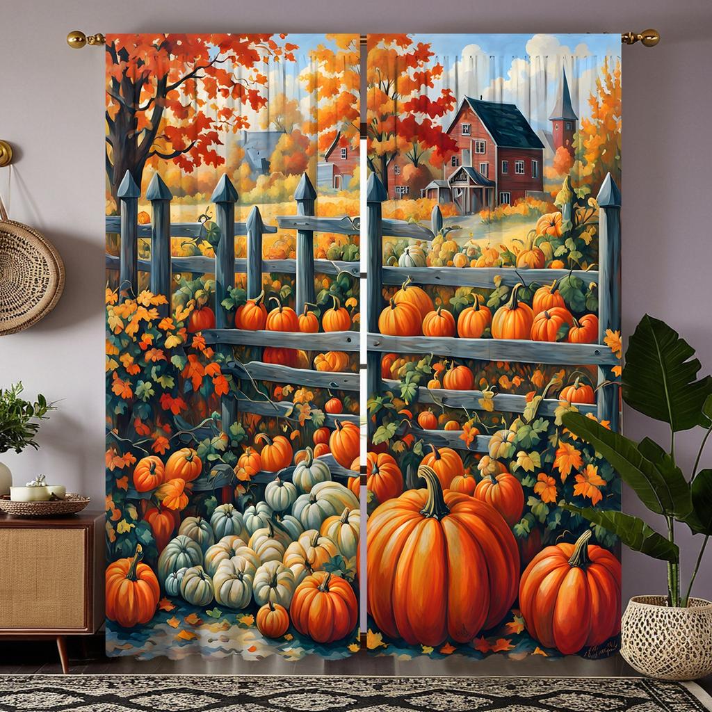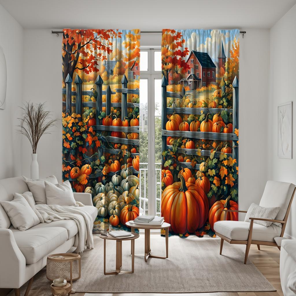 2 шт. HD Harvest Festival Pumpkin Hut Maple Forest декоративная занавеска Желтая завязка цифровая печать занавеска стиль украшения дома