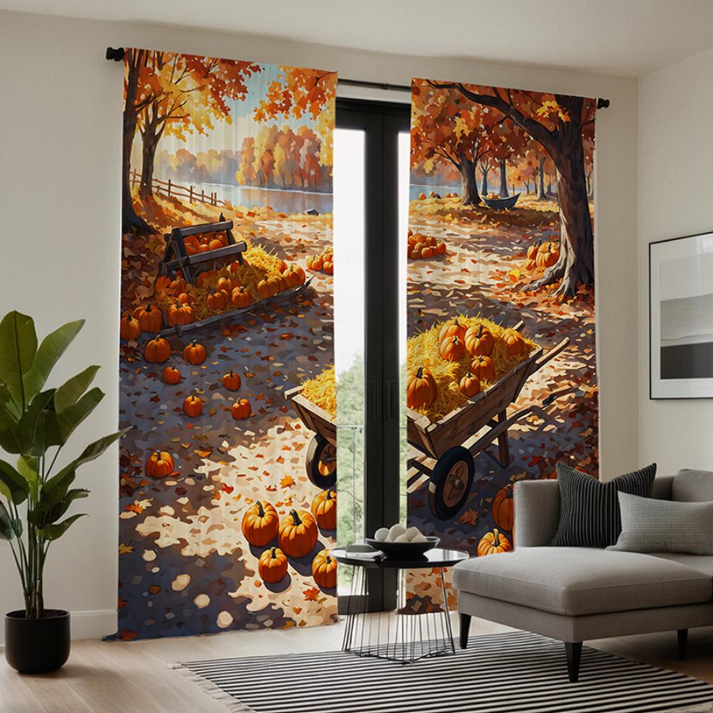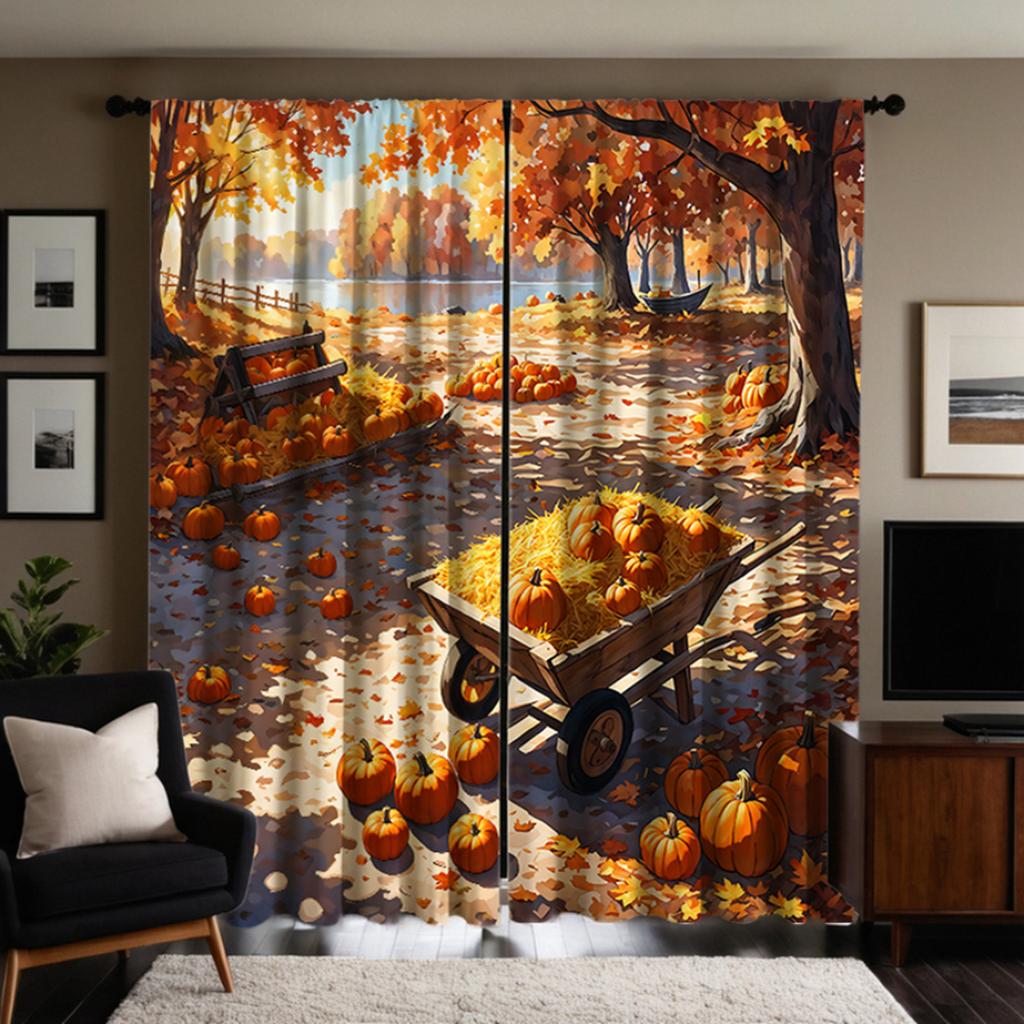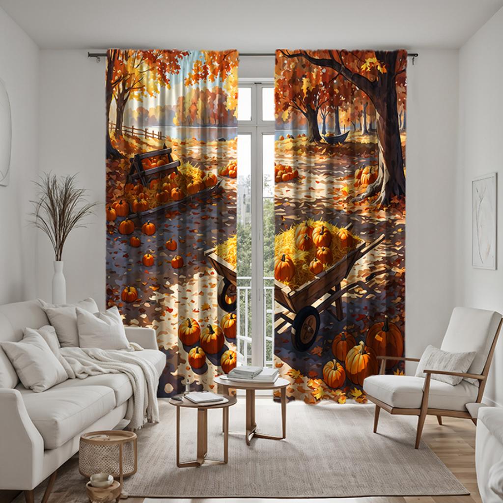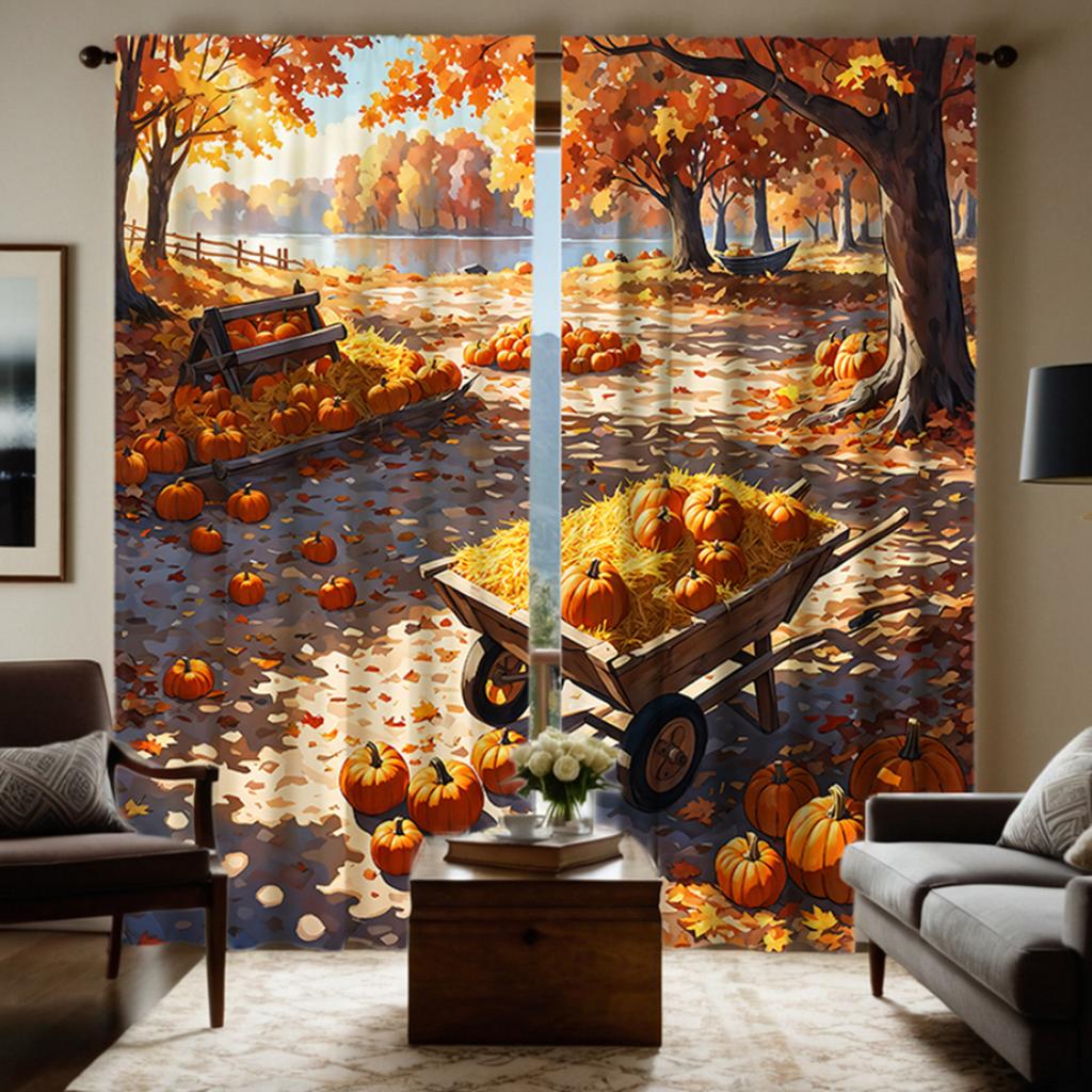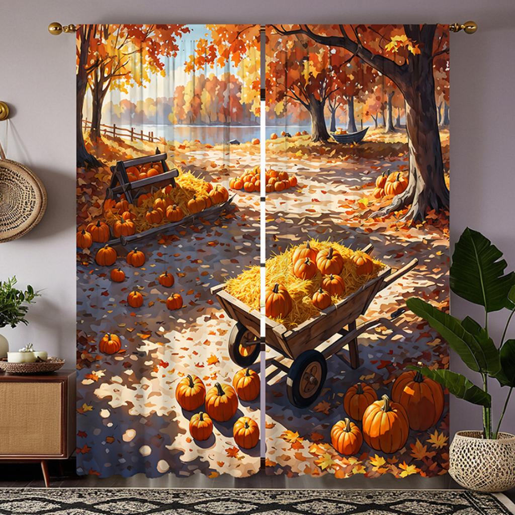 2 шт. декоративных занавесок HD с изображением осеннего ветра и листопадной тыквы, желтая завязка, цифровая печать, стиль украшения дома, декор